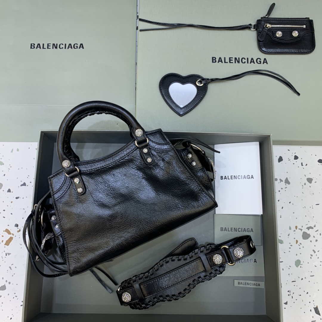 Balenciaga 700940210b Bolsa Neo Cagole City em Black Arena Lambskin