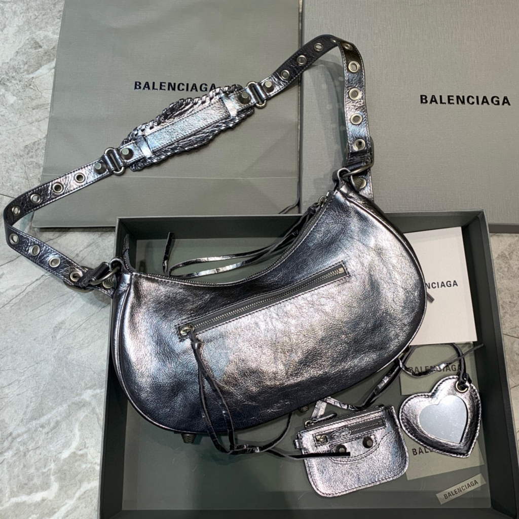 Balenciaga 67130723 feminino Le Cagole Pequeno ombro de saco de cascalhos de arena em prata