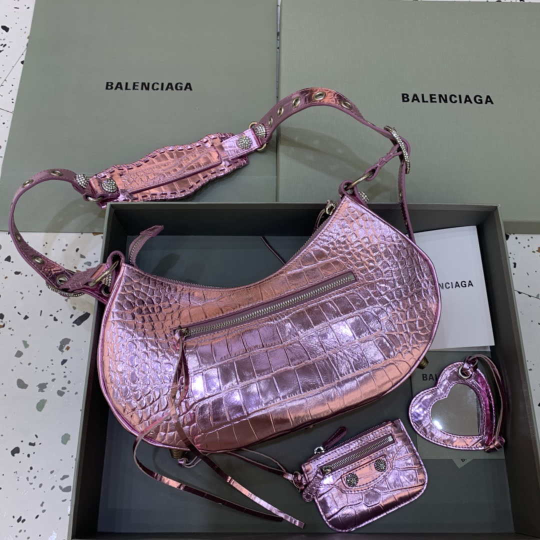 Balenciaga 6940271VG9 Le Cagole Mini Multipouch em crocodilo rosa