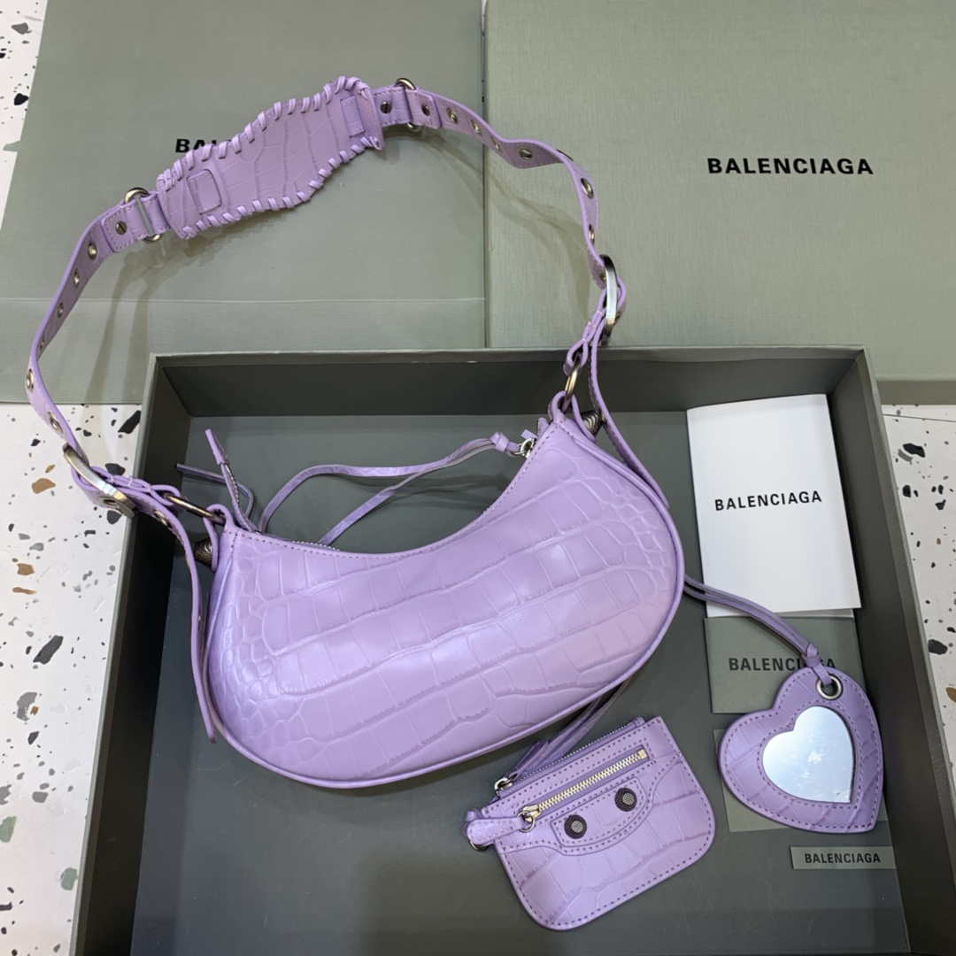 Balenciaga 700940210 Bolsa Neo Cagole XS feminina em crocodilo em rumo roxo