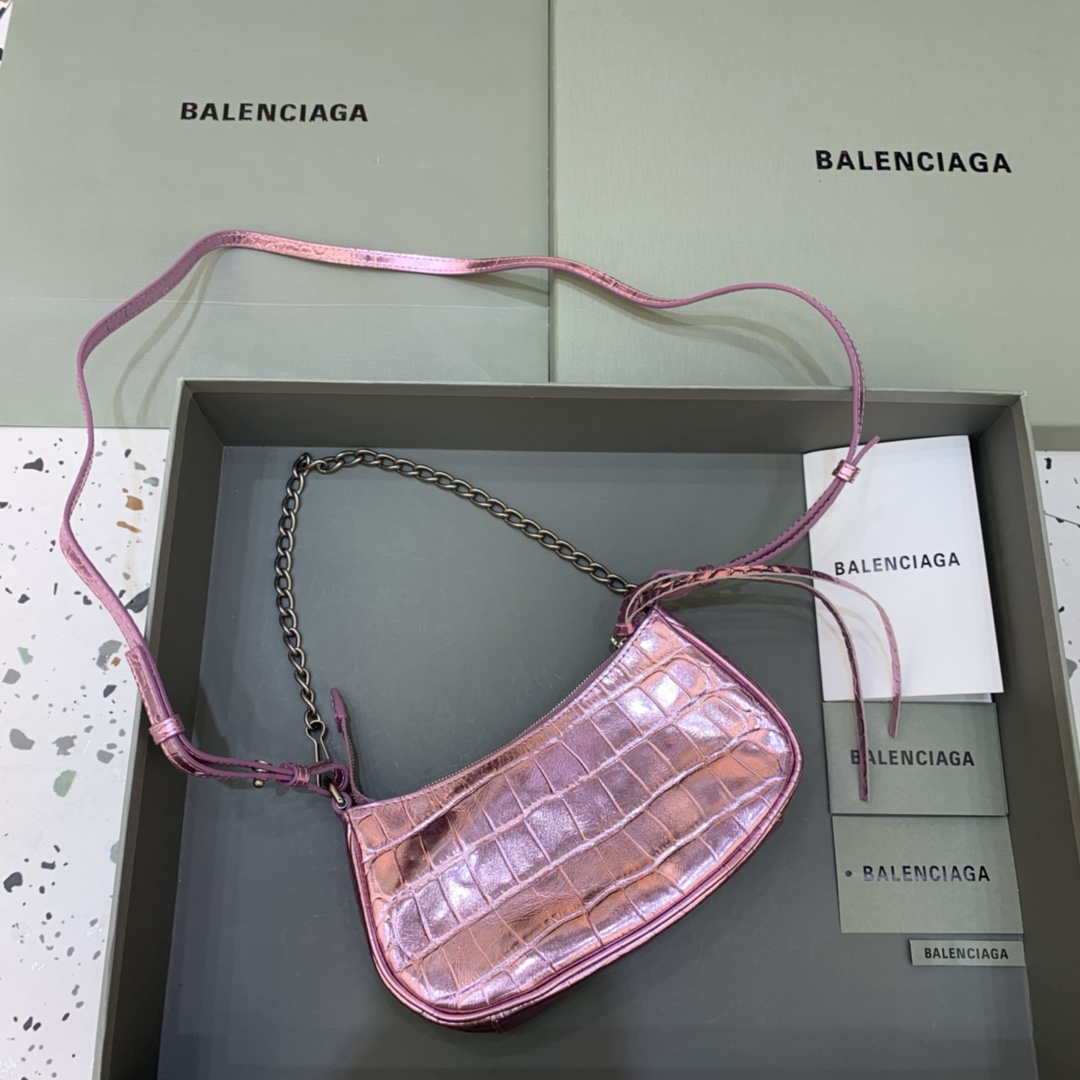 Balenciaga 67130723 feminino Le Cagole Pequeno Bolsa de ombro Crocodilo em relevo no Sky Pink
