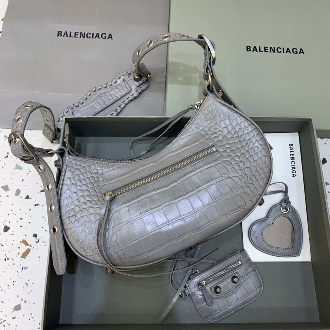 Balenciaga 6940271VG9 Le Cagole Mini Multipouch em crocodilo cinza