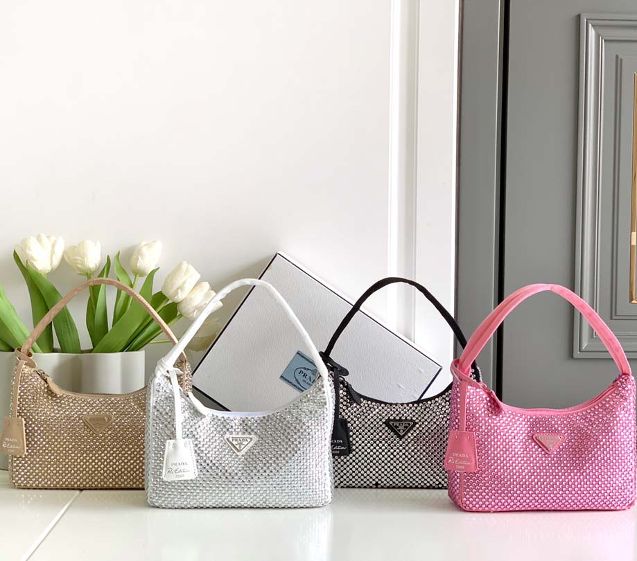 Prada aaa-satin Mini Bolsas com cristais artificiais