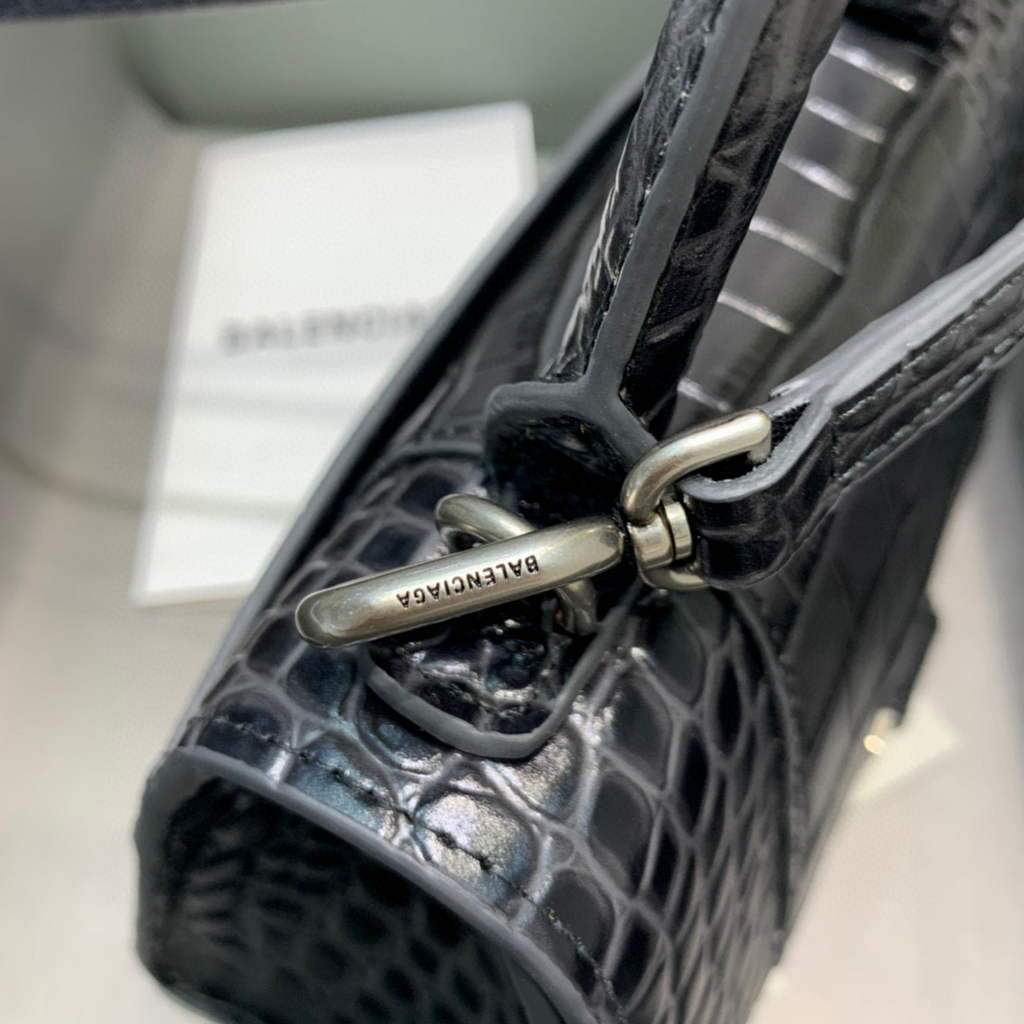 Balenciaga 592833 Hourglass XS Top Hanking Bolsas Black Silver