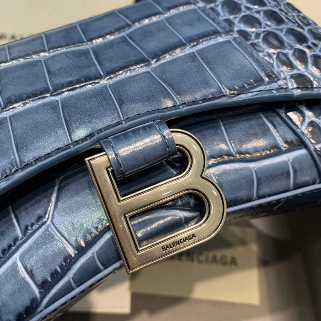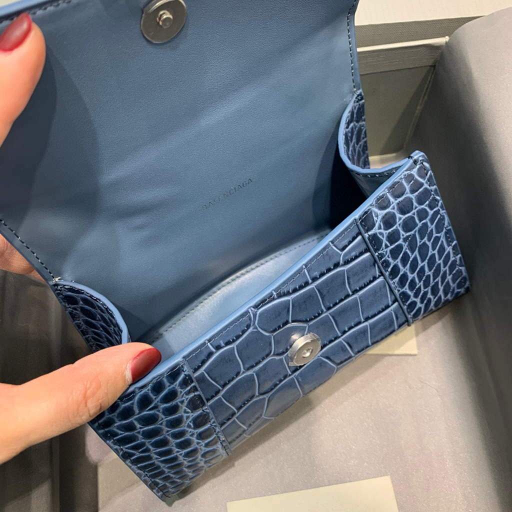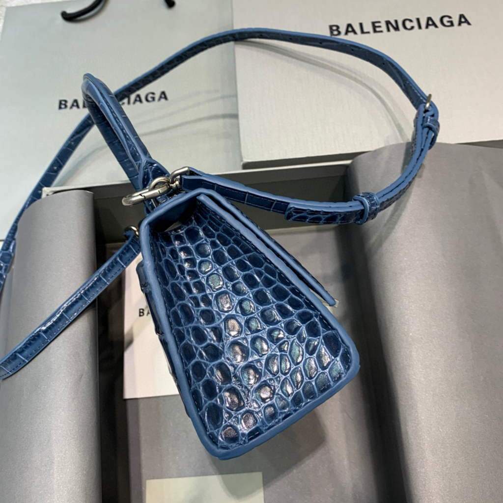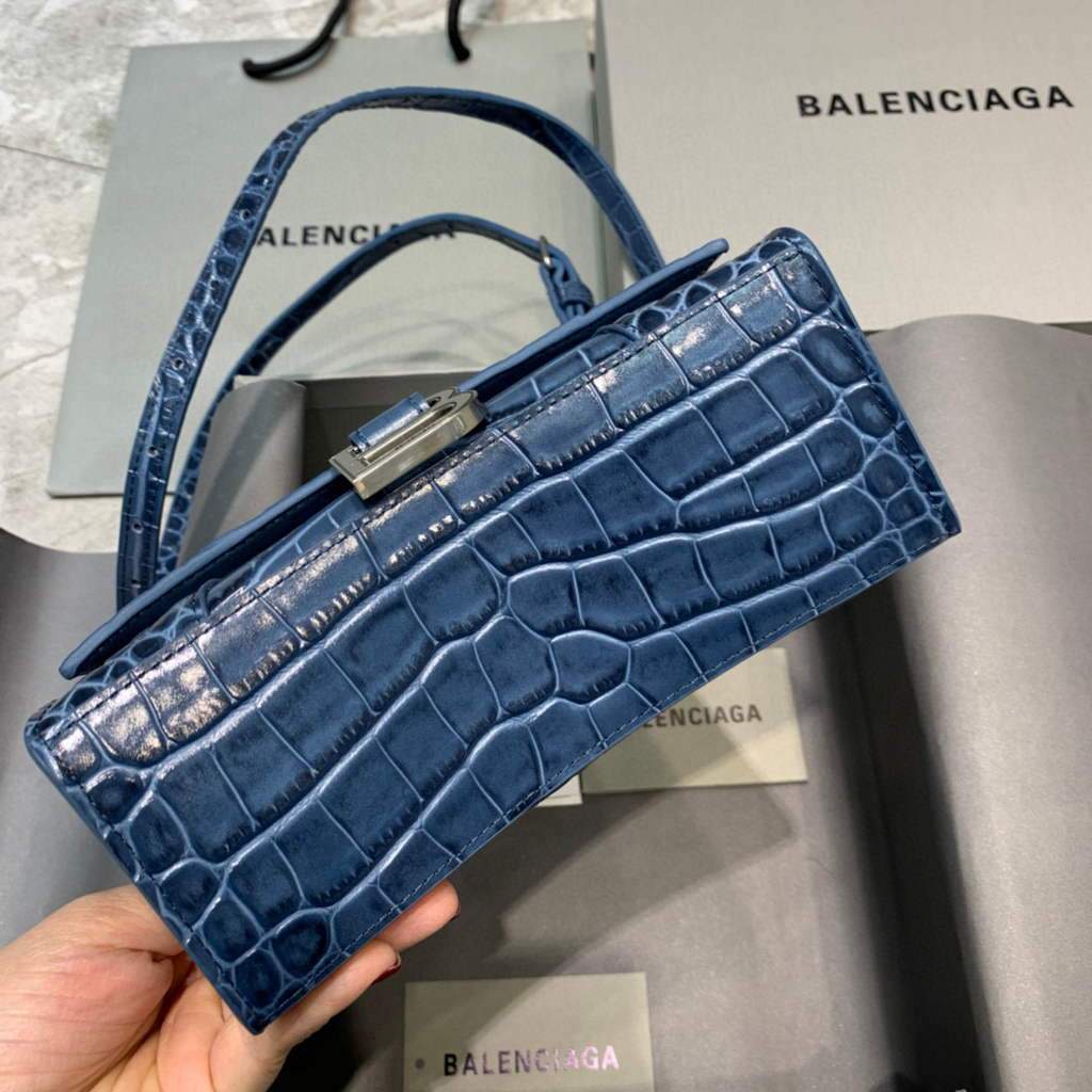 Balenciaga 592833 Hourglass XS Top Hanking Bolsas Navy Blue Silver