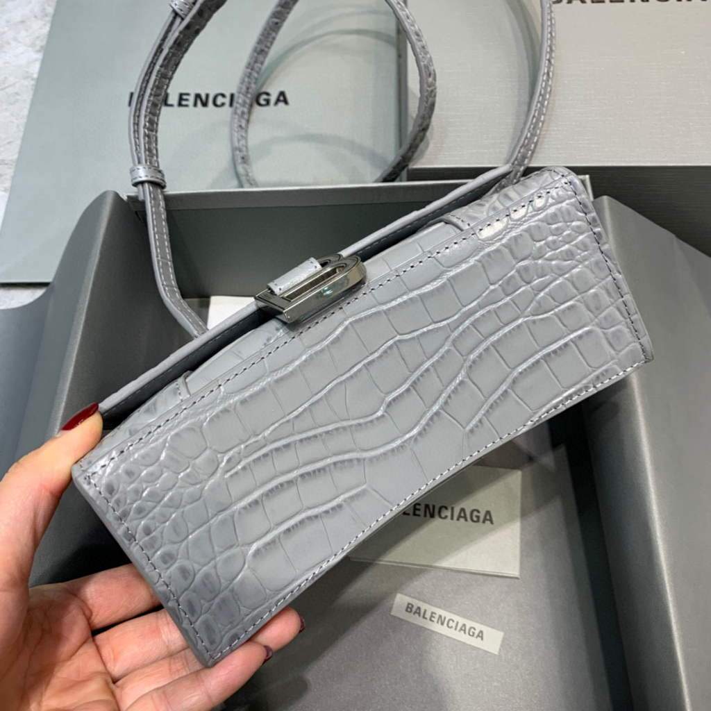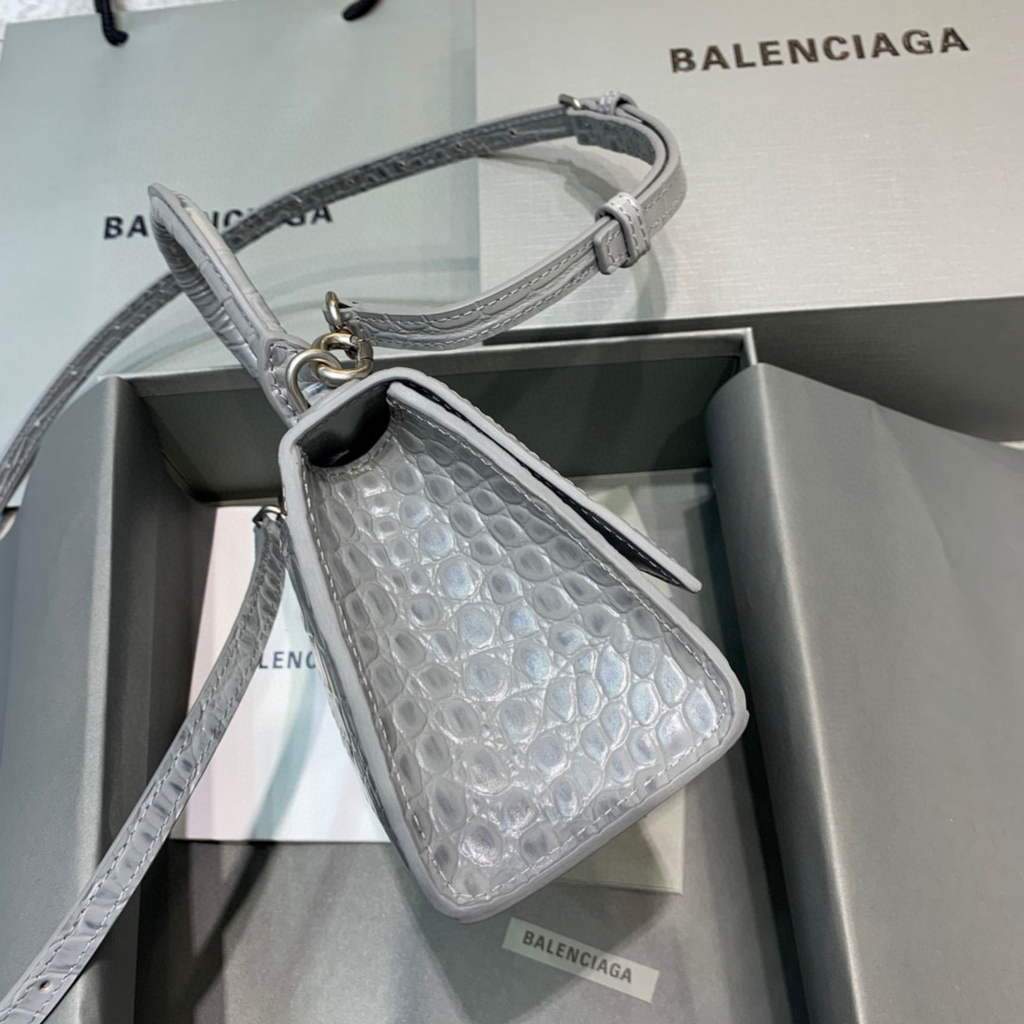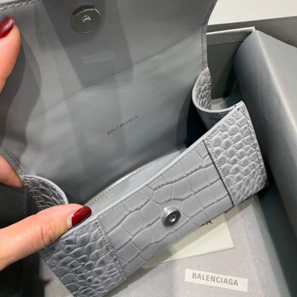 Balenciaga 592833 Hourglass XS Top Hanking Bolsas Navy Cinza Prata