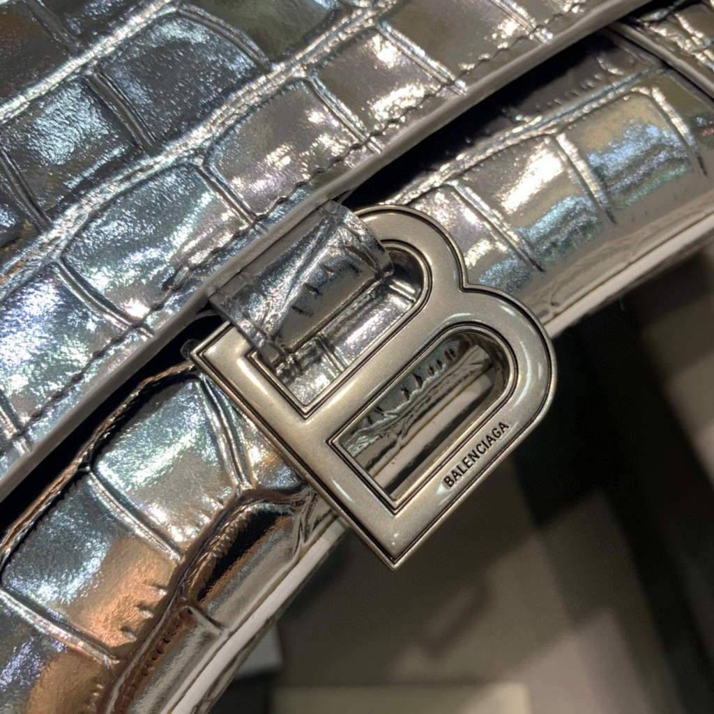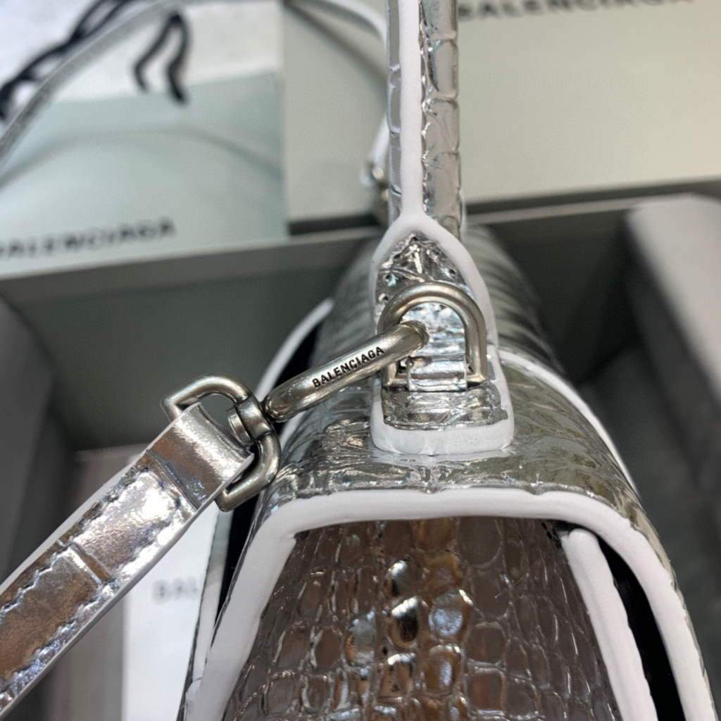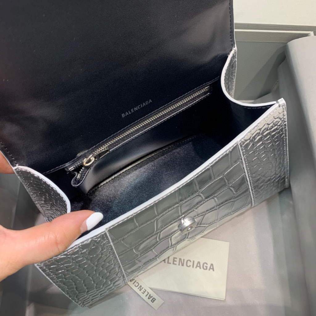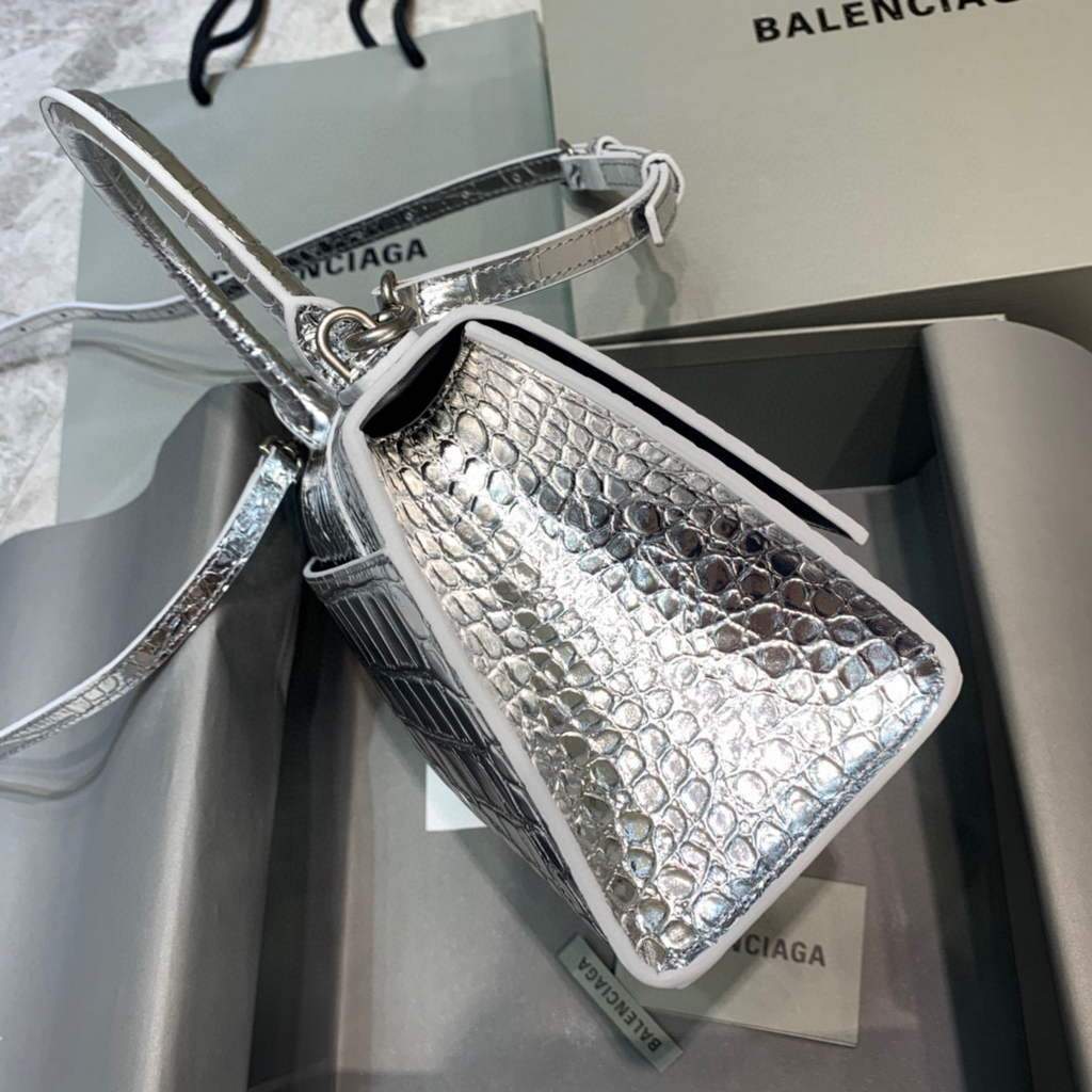 Balenciaga 593546 Hourglass Small Top Top Handle Crocodile Bolsas Silver