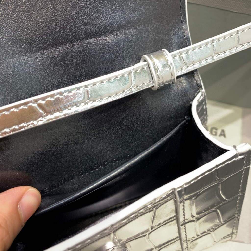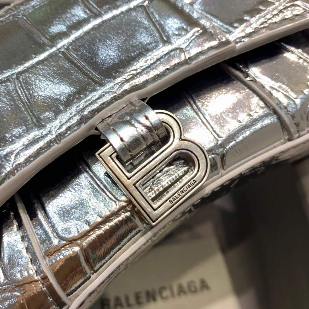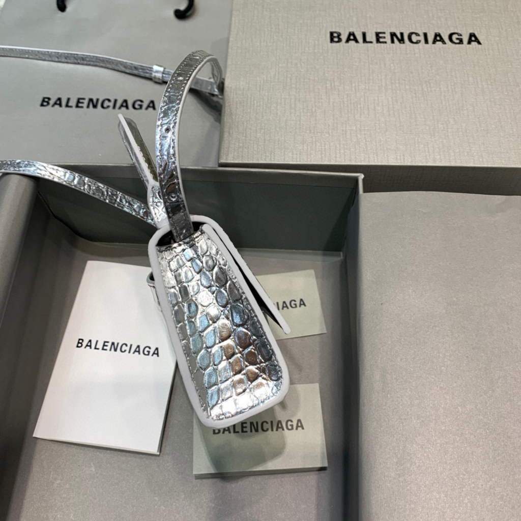 Balenciaga 664676 Mini alça de primeira linha de Hourglass Crocodile Saco de prata