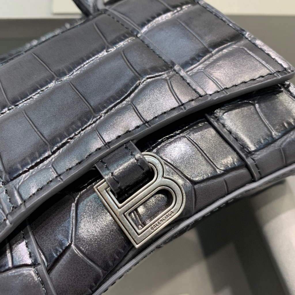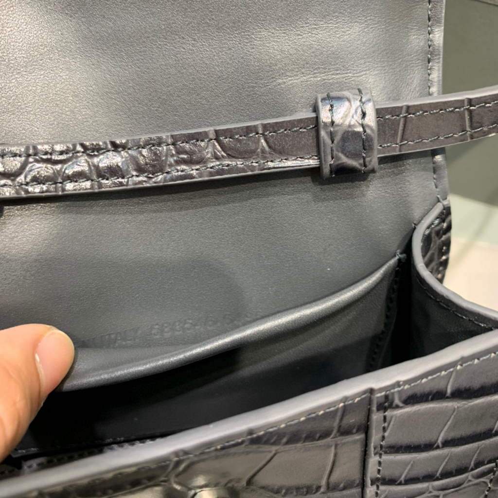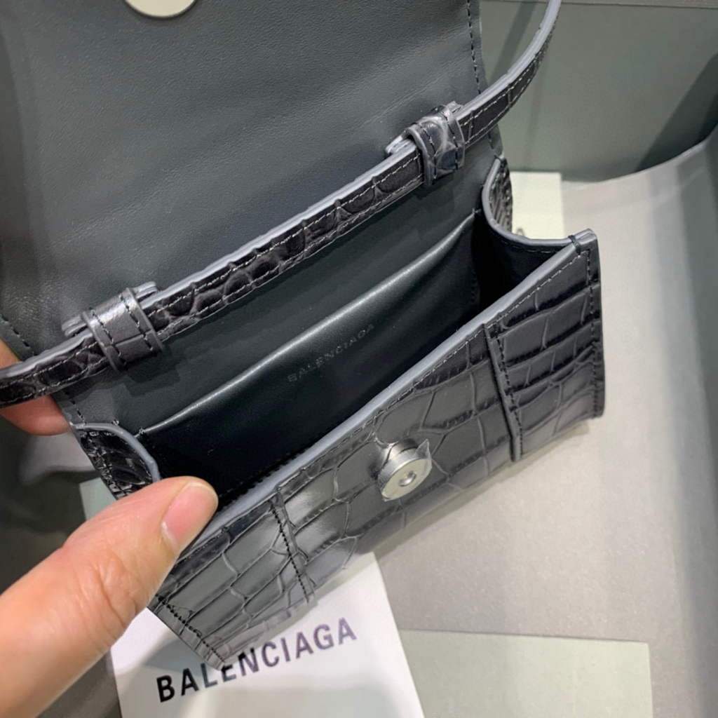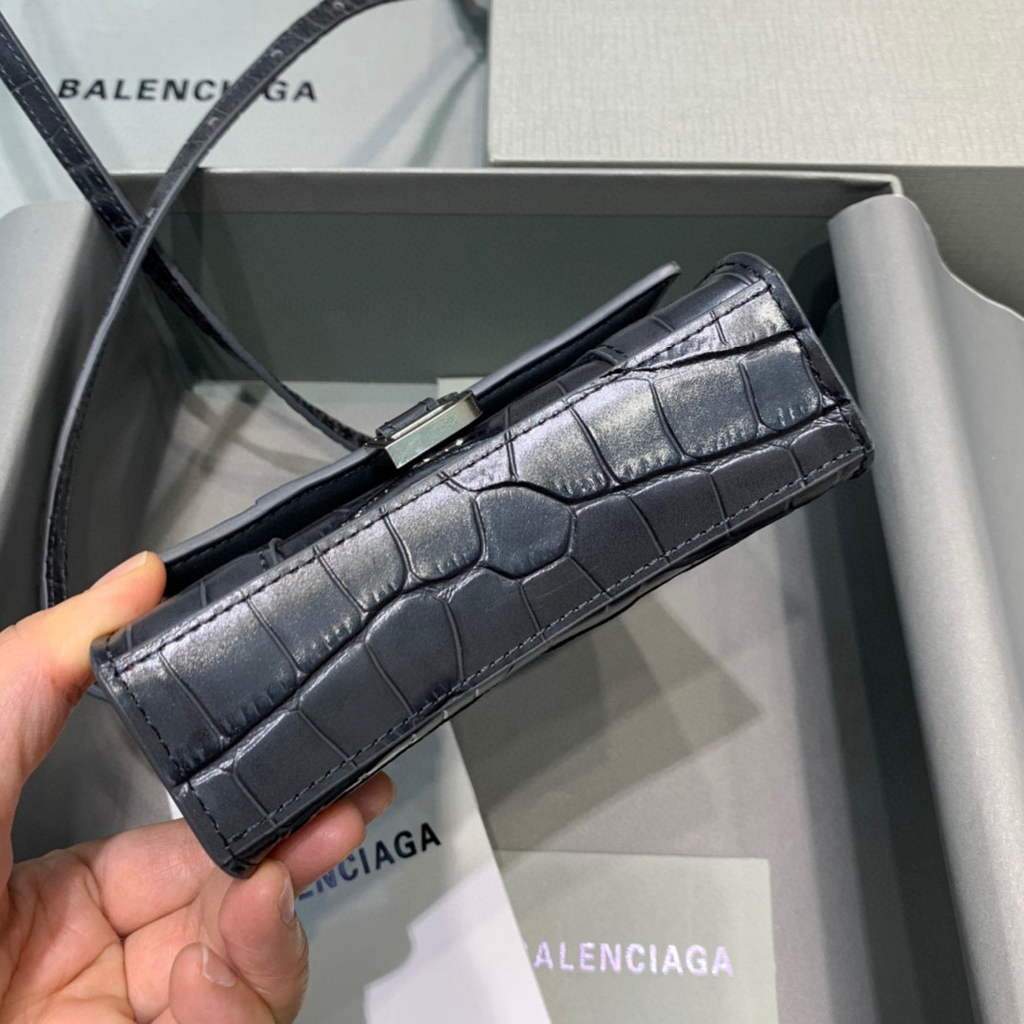 Balenciaga 664676 Mini Houndglass Top Handle Bolsa Crocodilo Preto