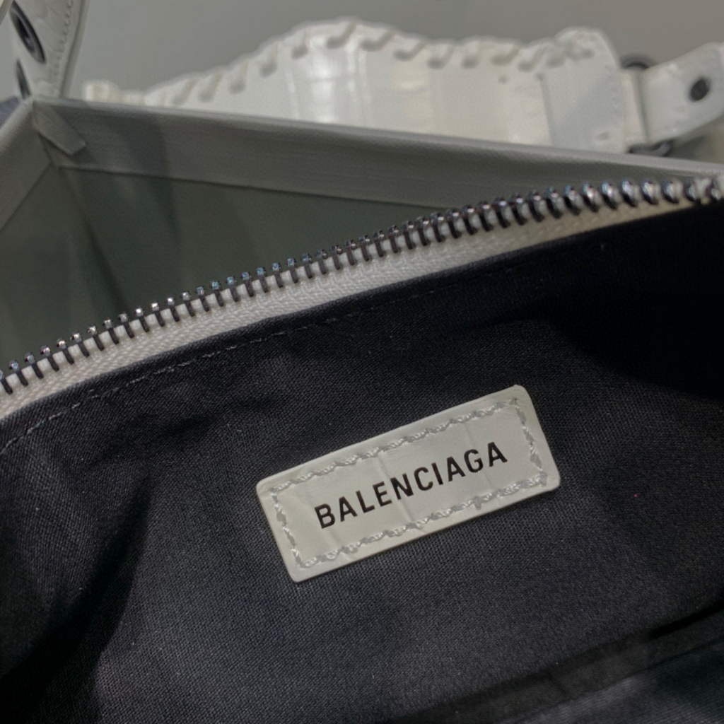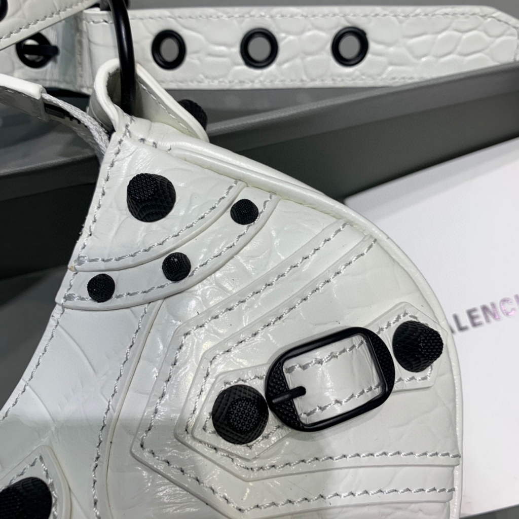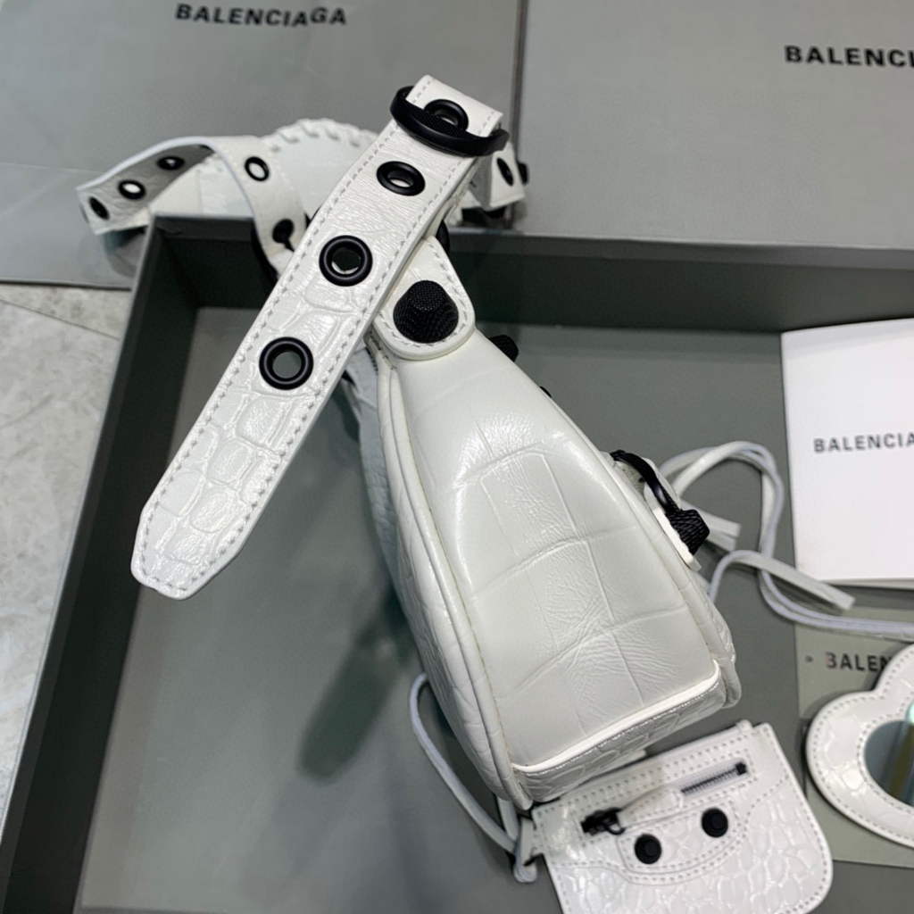Balenciaga 700940210 Bola Neo Cagole XS feminina em crocodilo de crocodilo branco