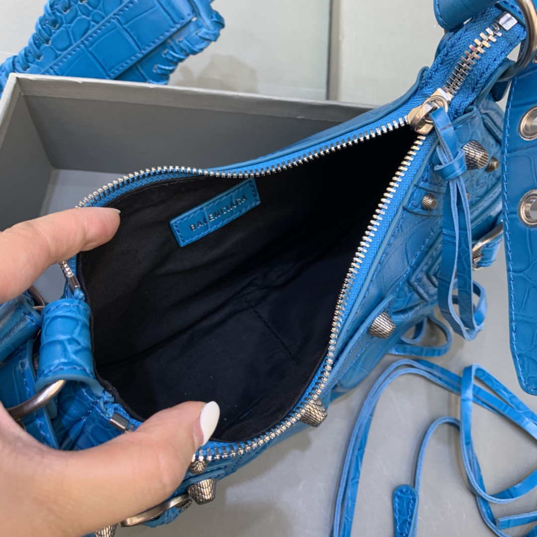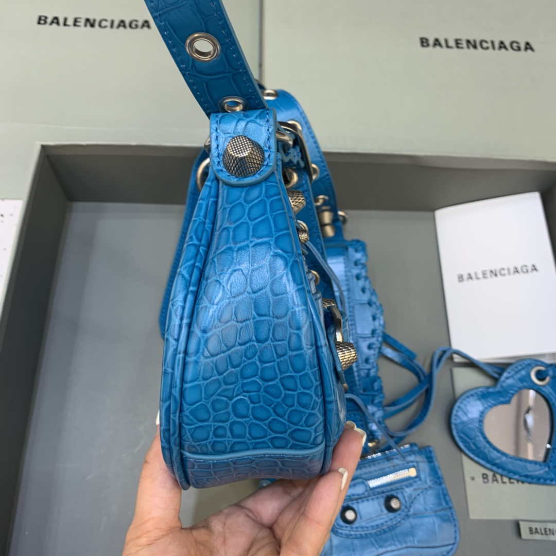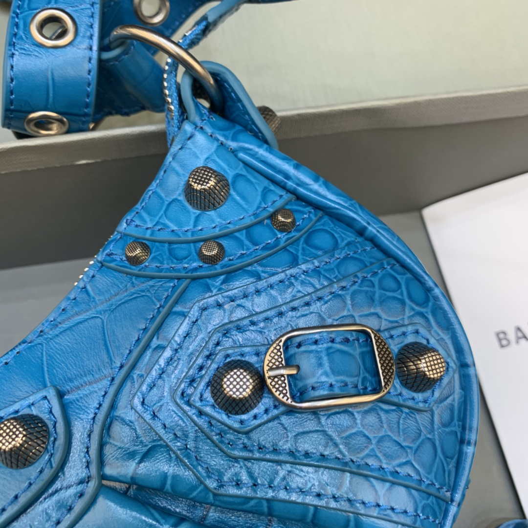 Balenciaga 700940210 Bola Neo Cagole XS feminina em crocodilo em relevo azul