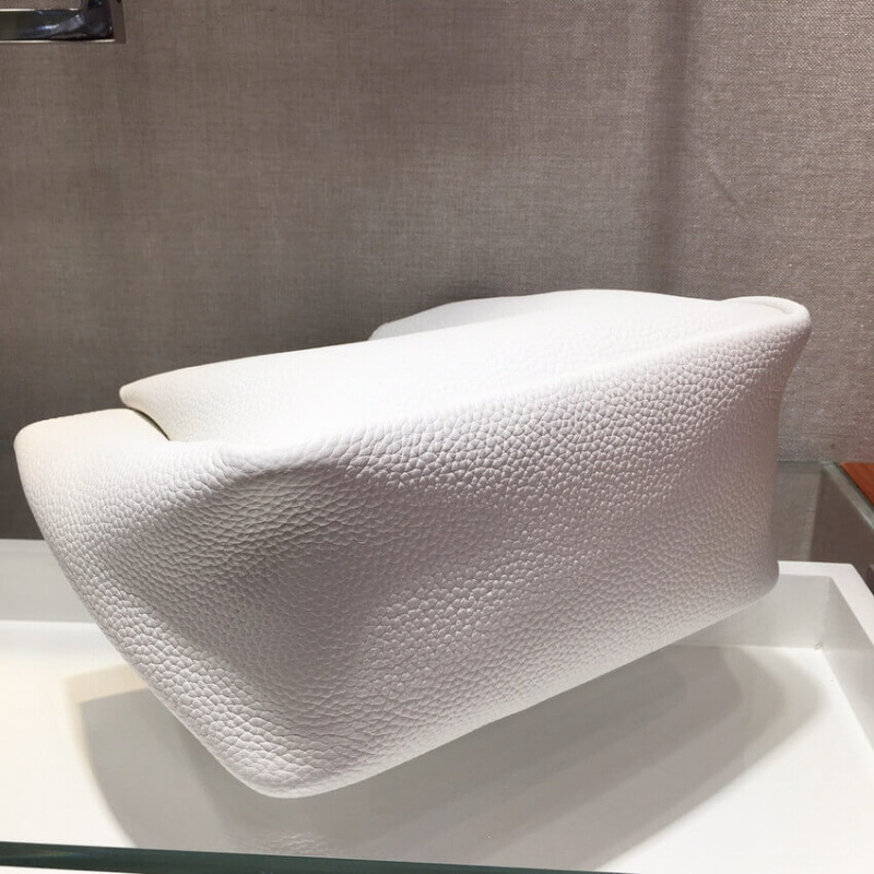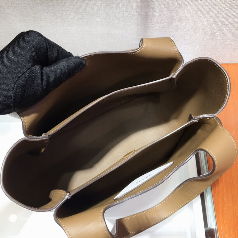 Um design harmonioso com elegância natural caracteriza esta bolsa de couro com alças duplas e logotipo de metal. Os dois bolsos laterais aumentam a silhueta macia do acessório.