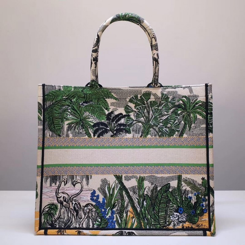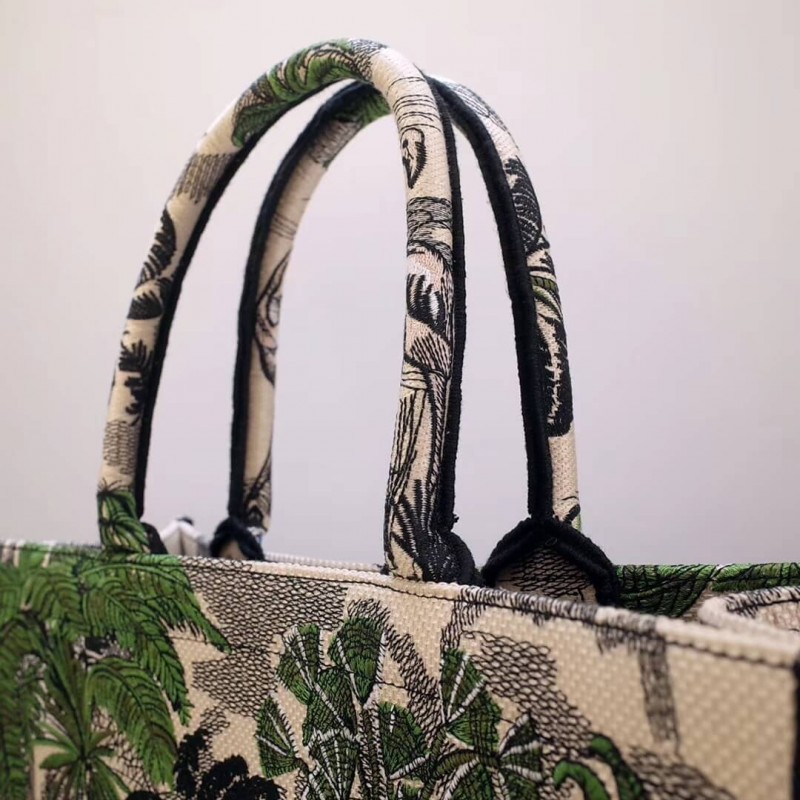 Dior Book Tote Bag em lona bordado com uma folha verde toile de Jouy Tropicalia Motif.-Carregado na mão ou no ombro
