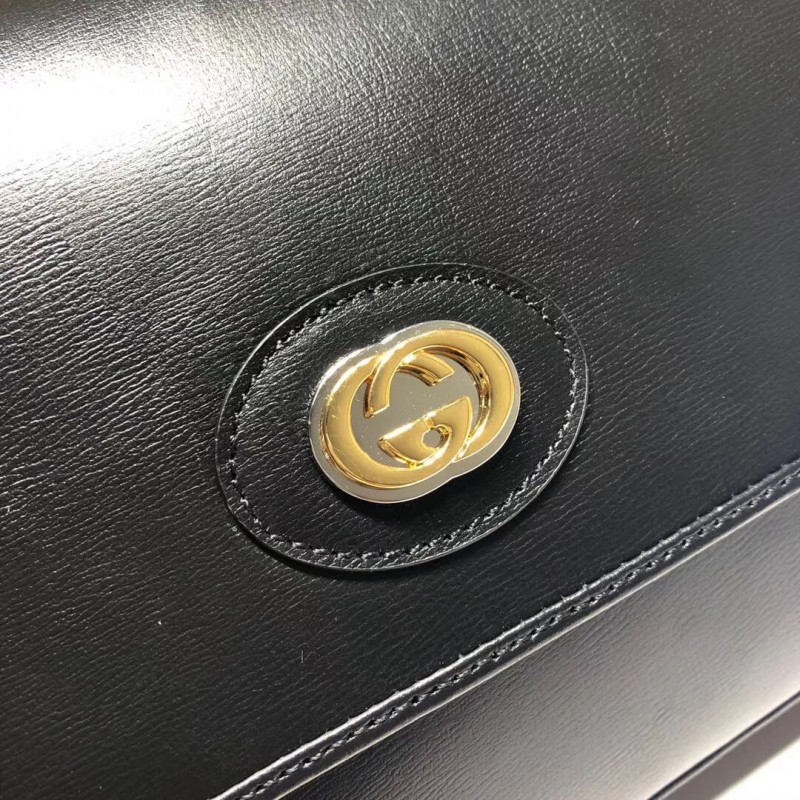 Definida pela alça da corrente da marina, esta bolsa de ombro bege e preta é tratada especialmente para um efeito vintage texturizado. A forma compacta é finalizada com um conjunto G interligado em tons de ouro em um detalhe da Plaquea em tons de prata que define a linha. A pulseira deslizante empresta um elemento multifuncional ao estilo, usado como alça de ombro ou dobrou para criar uma alça superior.