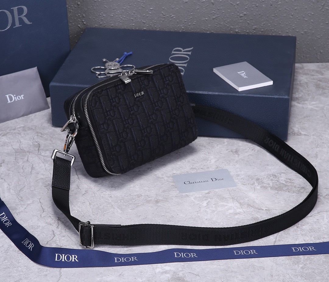 A bolsa presta homenagem ao motivo oblíquo da Dior, exibido pela primeira vez nas criações da casa em 1967. Criado em Black Jacquard, apresenta um fechamento fechado de duas vias na parte superior e um bolso dianteiro com três vagas de cartas. Uma pulseira de ombro ajustável e removível preta adornada com a assinatura ‘Christian Dior’ e feita com tecido técnico Jacquard é concluído por dois ganchos de bronze com acabamento em rutênio. Uma assinatura ‘Dior’ em relevo está presente no interior simplificado e espaçoso, com um bolso de patch para manter seus itens essenciais com segurança. A bolsa é uma peça moderna que adicionará um toque de elegância a qualquer roupa.