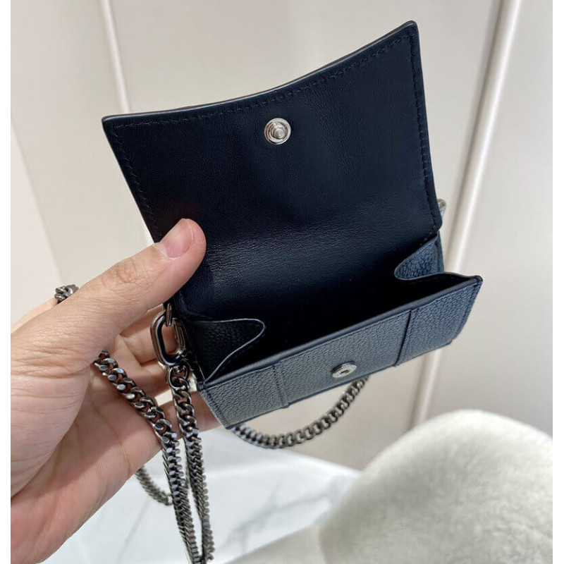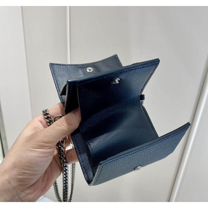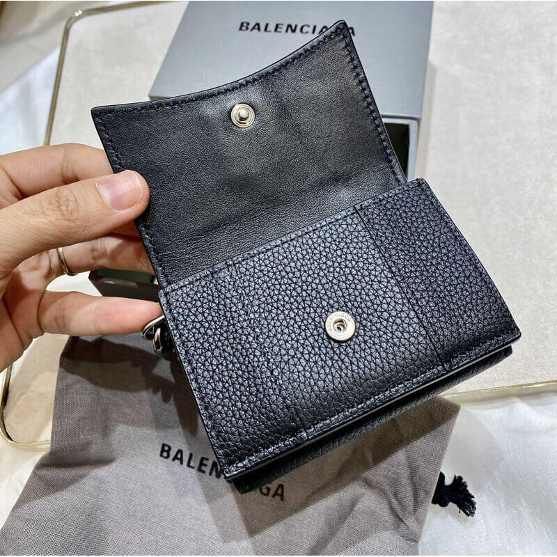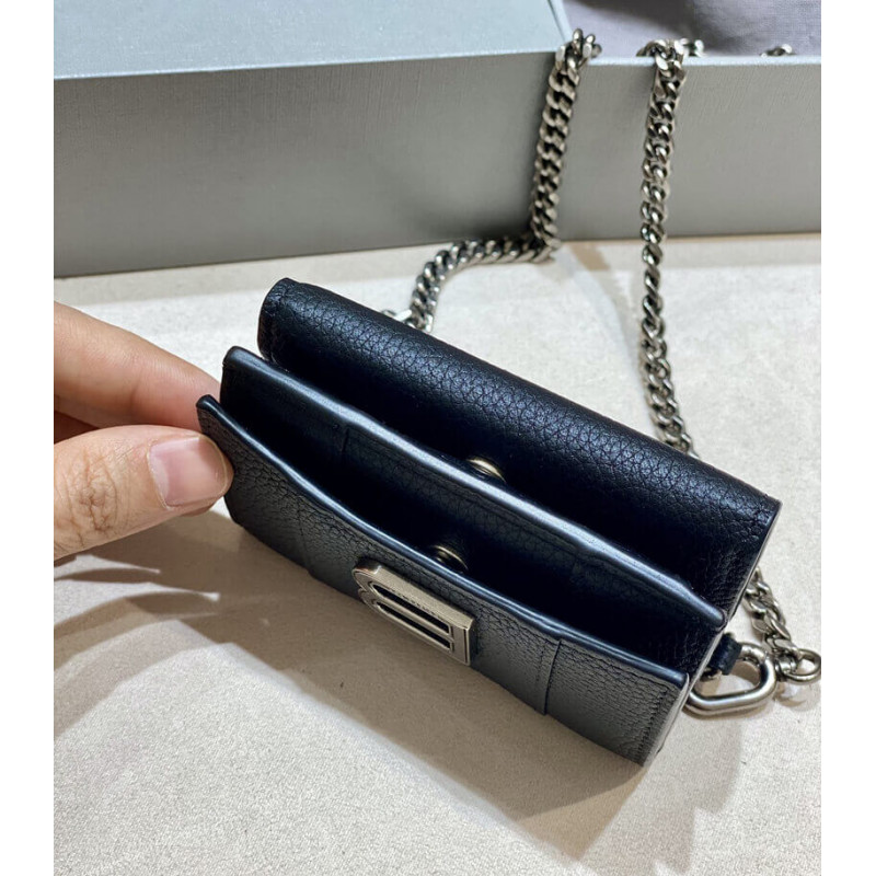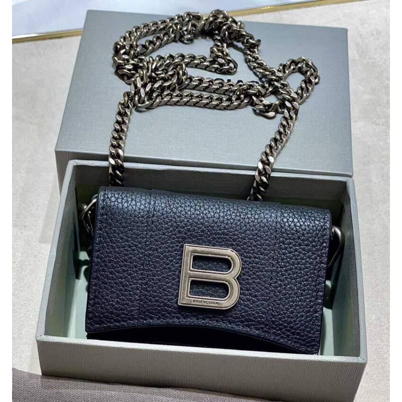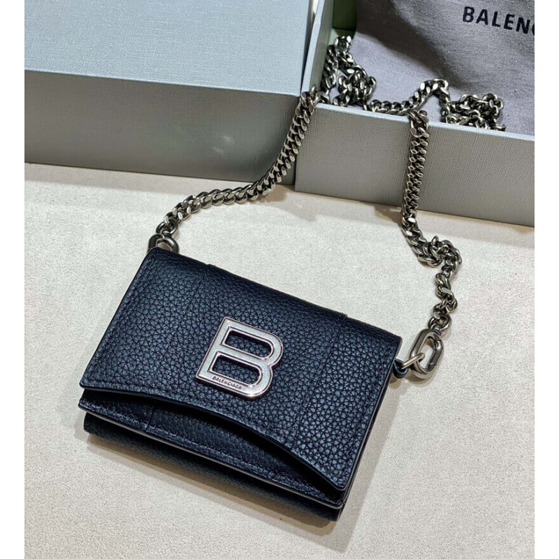 Esta carteira de couro com correia de corrente Balenciaga preta é criada para uma forma compacta na Itália e apresenta um acabamento em fenda, placa de tom ‘B’ de Tone ‘B’ na aba dianteira curva, correia de tons de prata destacável, fixação de botão de snap, um bolso da moeda dianteira, bolso da conta e três slots de cartão. Como areia através da ampulheta, assim como nosso amor por esta carteira Balenciaga.