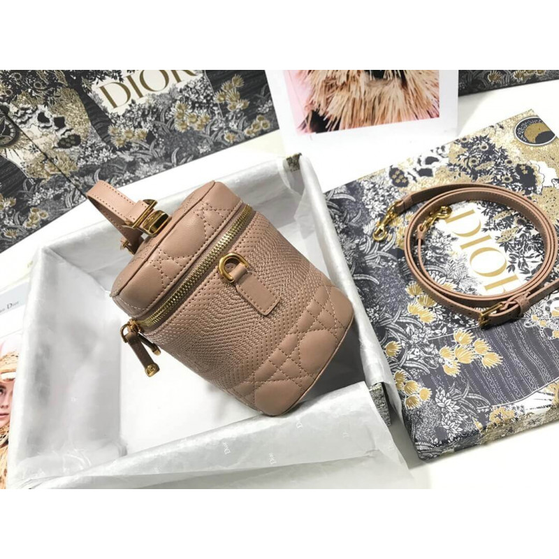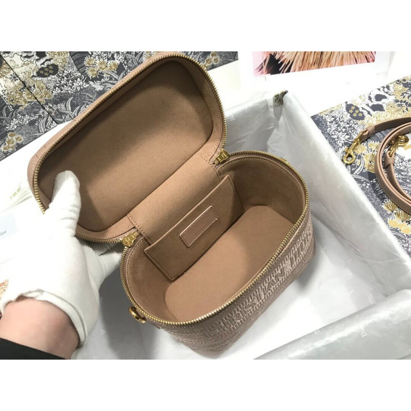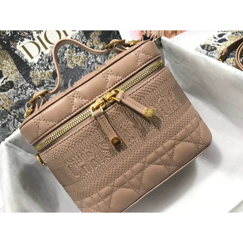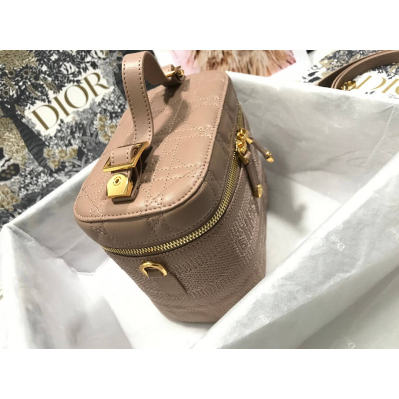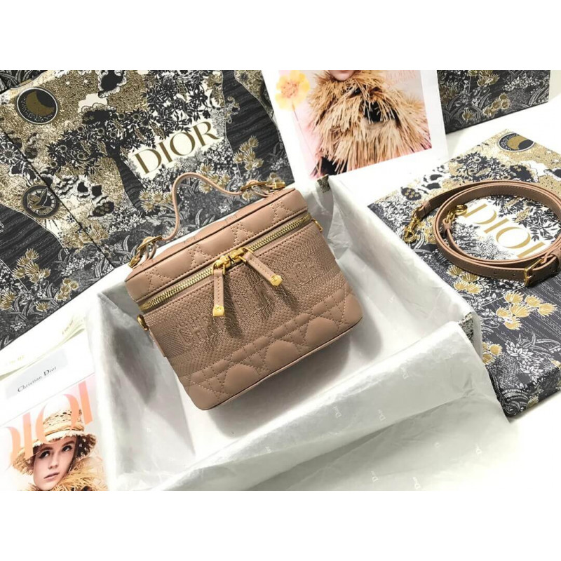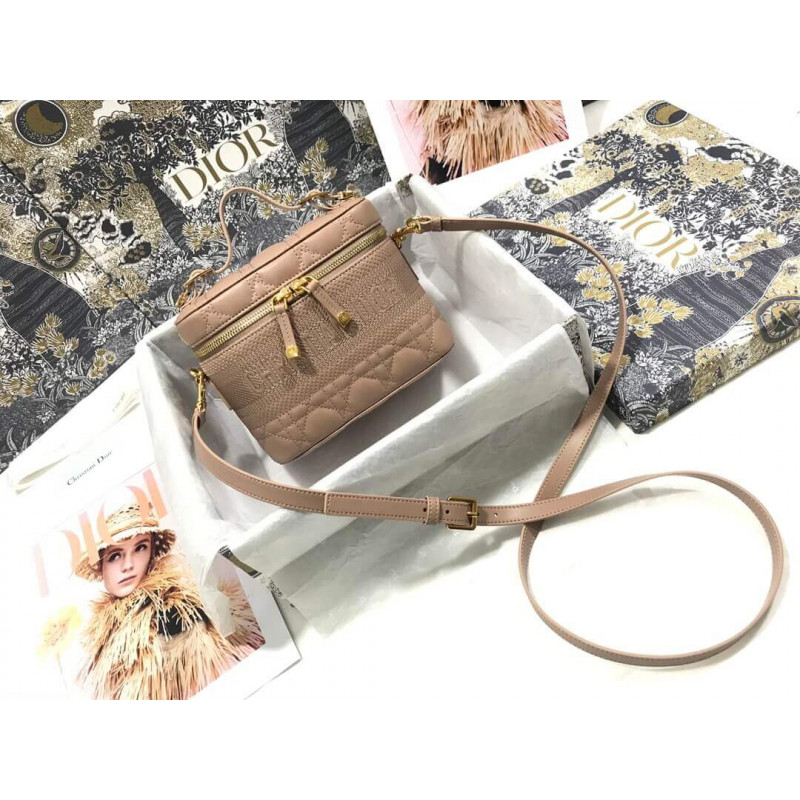 O caso da vaidade de diortravel é apresentado em um formato em miniatura. Criado em pele de cordeiro Beige Supple, é aprimorada pela Canne Topsitching e uma banda em relevo com a assinatura Christian Dior. Seu fechamento de ZIP é aberto em um compartimento principal que pode acomodar um telefone, uma carteira, um estojo para airpods e um caderno. O estojo da vaidade é um companheiro diário ideal e pode ser transportado à mão, usado sobre o ombro ou crossbody com a alça e a alça removível.