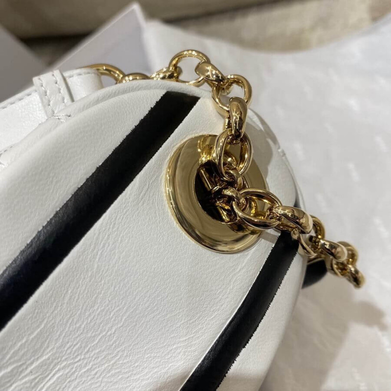 Novo nesta temporada, Maria Grazia Chiuri imagina a bolsa Dior Vibe com o fascínio de uma bolsa hobo mostrando linhas modernas. O estilo de campin de lambl de Cannage Black apresenta um interior de camurça, enquanto uma assinatura branca da Christian Dior Paris adorna o fundo da bolsa. Apresentando uma alça além de uma alça removível e ajustável com uma fivela de inspiração militar, a bolsa de vibração Dior Medium pode ser transportada à mão, usada no ombro ou crossbody para um visual esportivo.