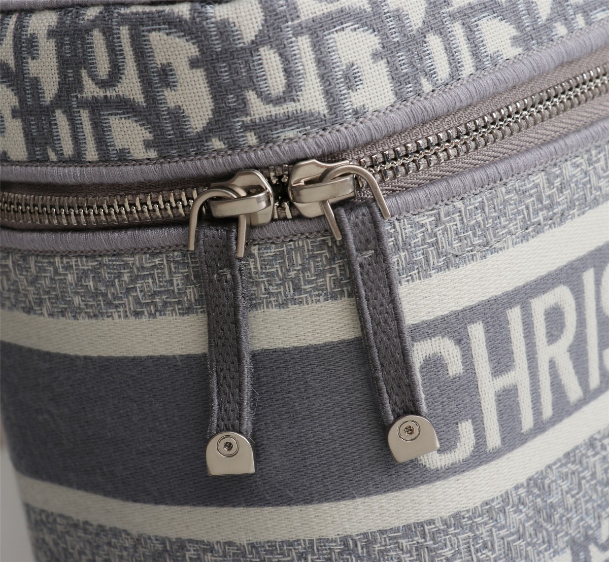 O caso Diortravel Vanity é um acessório elegante e inteligente. O design é totalmente bordado com um motivo oblíquo azul de Dior e é embelezado com uma assinatura ‘Christian Dior’ na frente. O estilo apresenta um compartimento principal espaçoso e vários lugares para acomodar produtos de higiene pessoal e maquiagem. O caso da vaidade, um excelente exemplo de Dior Savoir-Faire, é o companheiro de viagem ideal e pode ser coordenado com outras criações de diortravel.