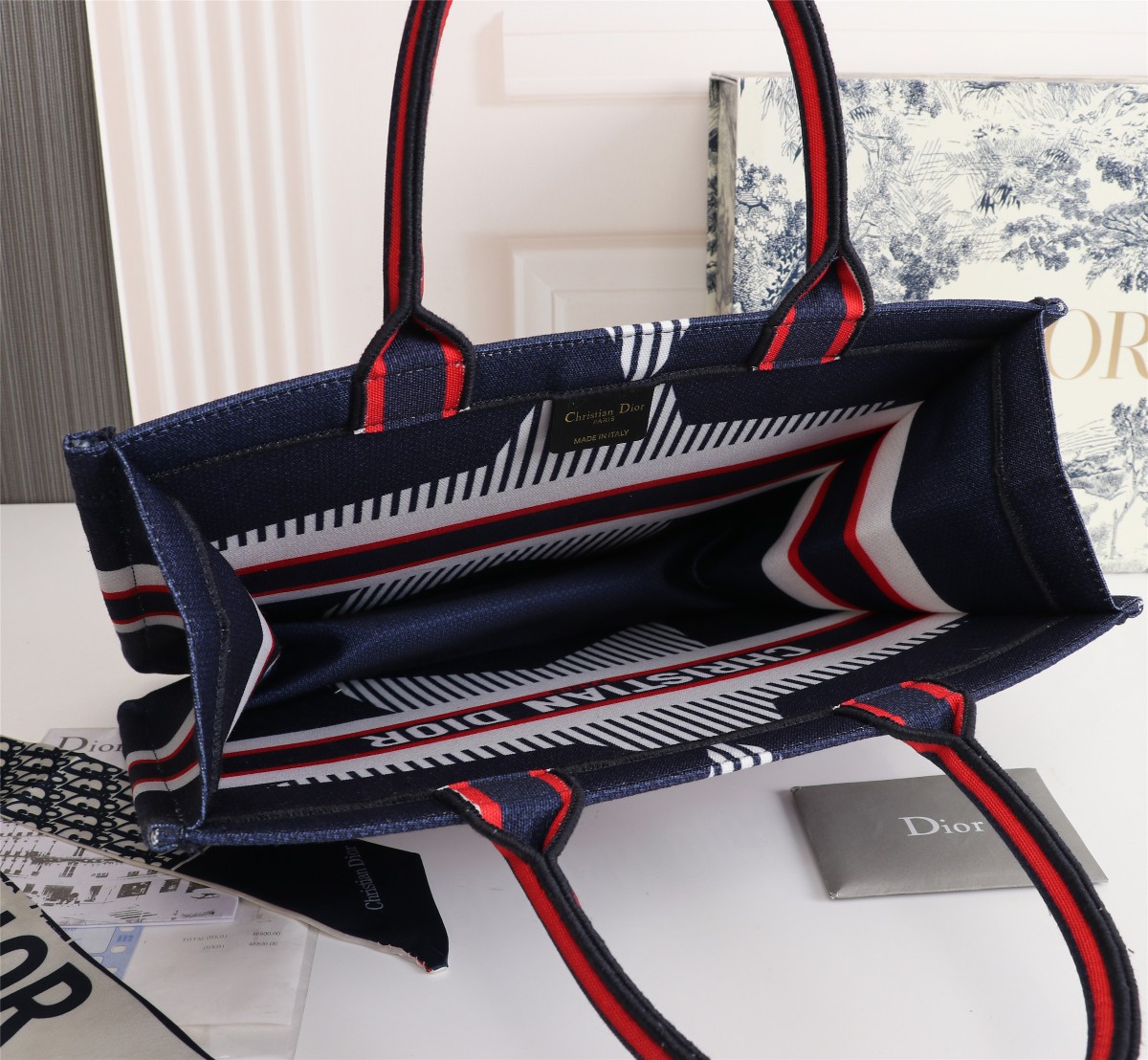 O Dior Book Tote, um estilo original introduzido pela diretora criativa Maria Grazia Chiuri, tornou -se um item básico da estética da Dior. Projetado para transportar todos os seus itens essenciais diários, a pequena silhueta azul retrata um motivo oblíquo Dior totalmente bordado com a assinatura ‘Christian Dior’ na frente. O Carryall é um excelente exemplo de Dior Savoir-Faire e combina bem com pequenos acessórios como o lenço Mitzah.