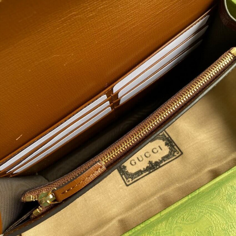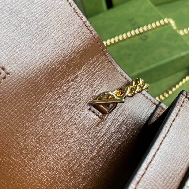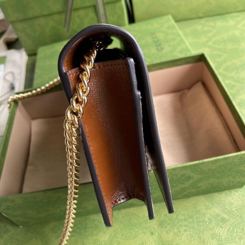 Uma carteira de cartas de corrente criada na tela do monograma da casa em homenagem ao Dia dos Namorados. Um emblema do romance, o estilo apresenta um detalhe em forma de coração em 3D com o logotipo da Gucci. Logotipo Gucci