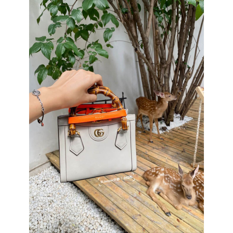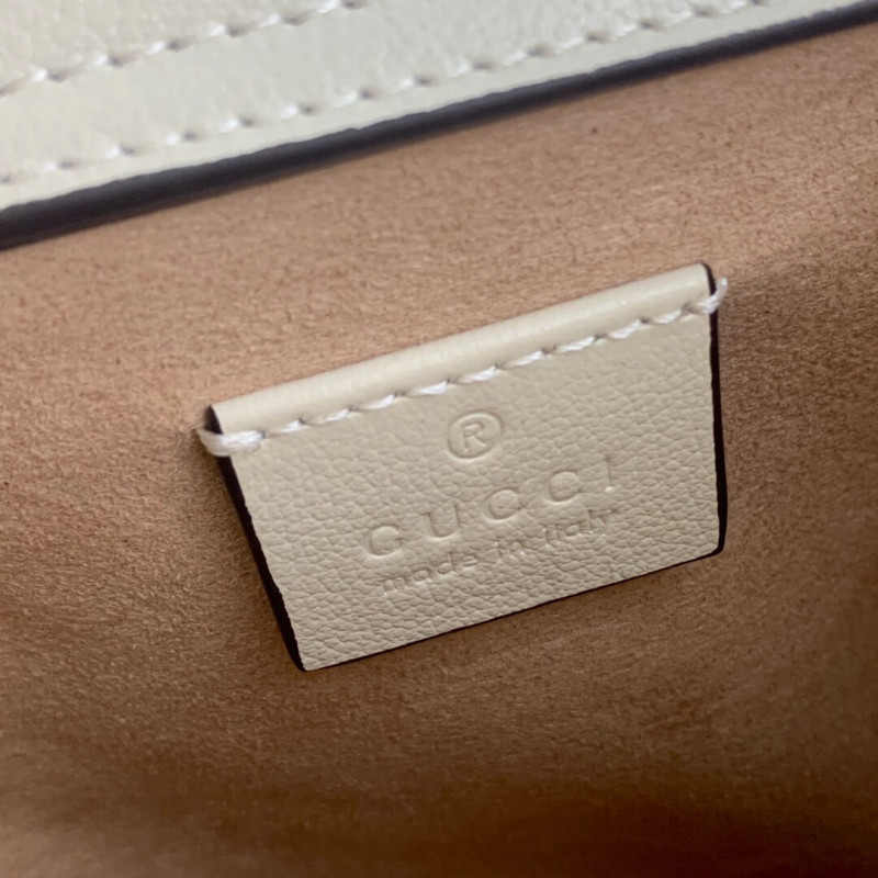 Combinando elementos reconhecíveis da casa, a mini -sacola é definida por suas alças de bambu e hardware duplo G. Criado a partir de couro azul claro, o acessório é acentuado por duas bandas de neon, uma referência divertida às bandas usadas para manter as alças em forma.