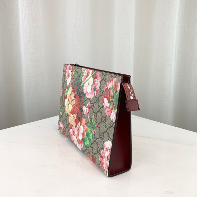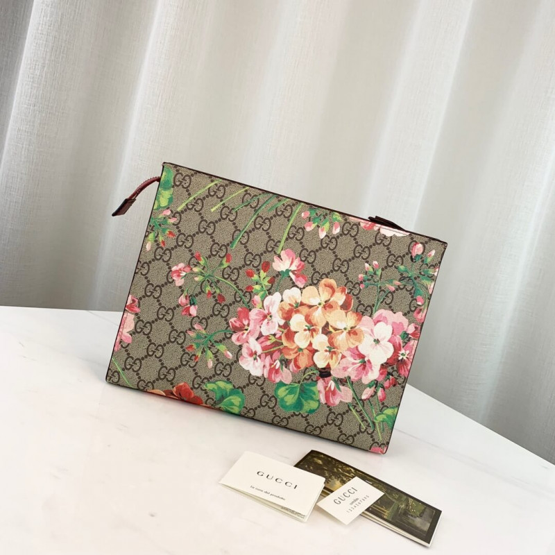 Um grande estojo de cosméticos em nossas flores impressas em nossa tela suprema GG. A impressão GG Blooms foi apresentada pela primeira vez durante a coleção de desfile de outono/inverno de 2015 e continuou a evoluir como um design icônico da Gucci. Material com baixo impacto ambiental, com detalhe de couro de rosa antigo