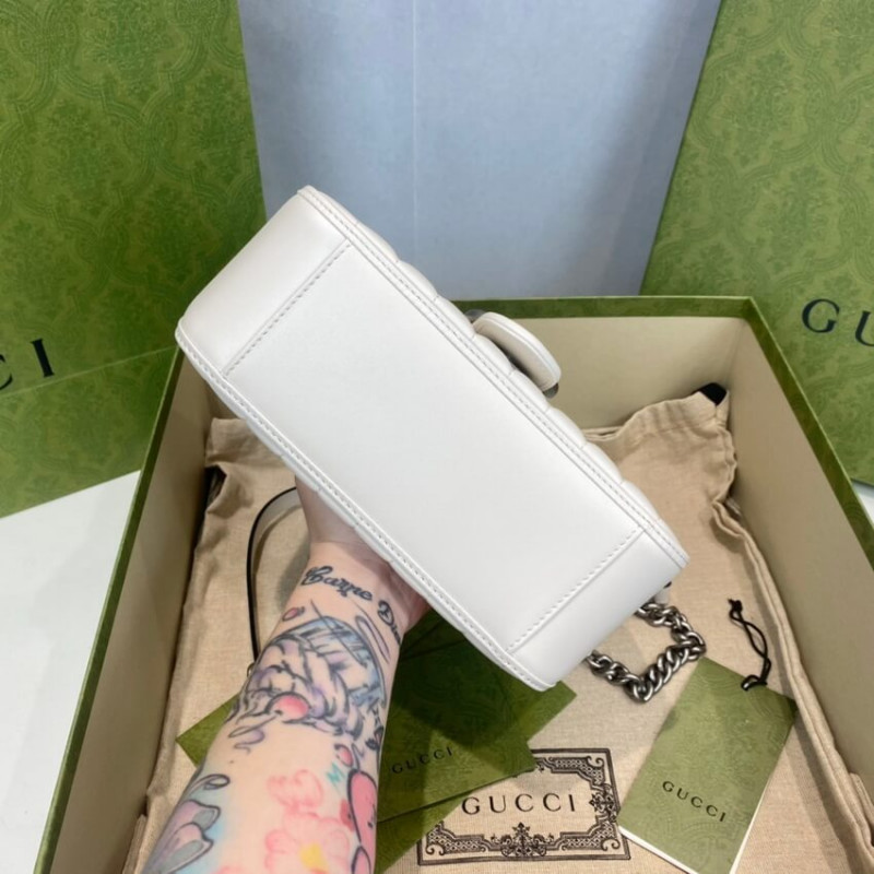 Gucci GG Marmont White Matelasse couro Mini Saco de alça superior 583571