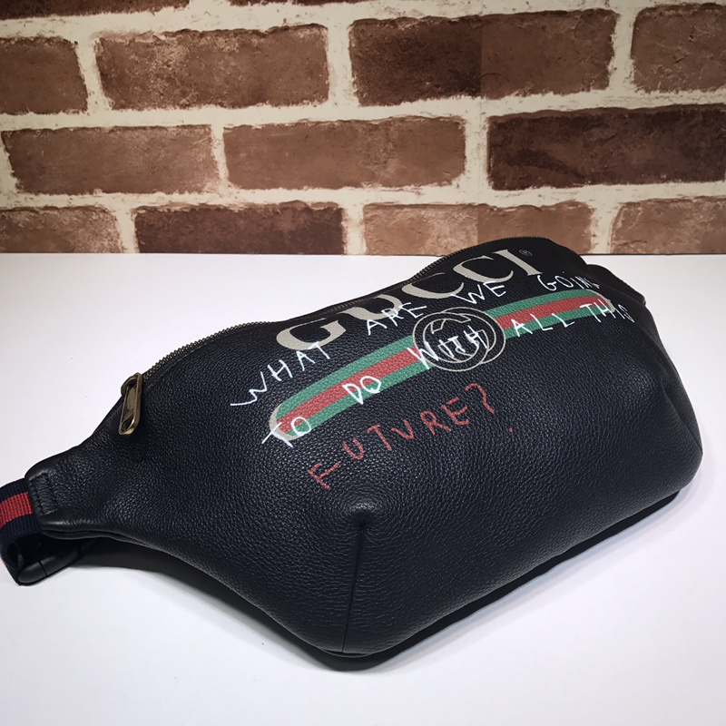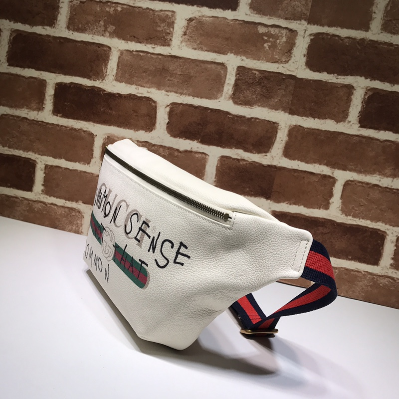 Gucci Graffiti Leather Belt Saco 493869 preto/branco