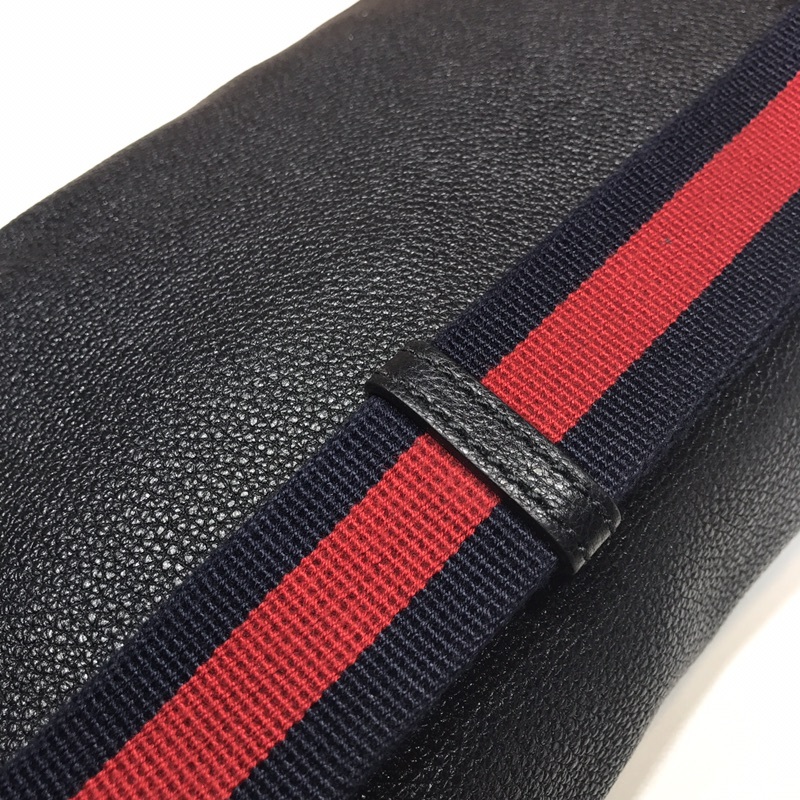 Inspirado em impressões vintage dos anos oitenta, o logotipo da Gucci é trazido à tona. O motivo do estilo retrô é apresentado na frente de um saco de cinto em couro flexível e flexível. Saco de cinto de couro de graffiti 493869 preto/branco