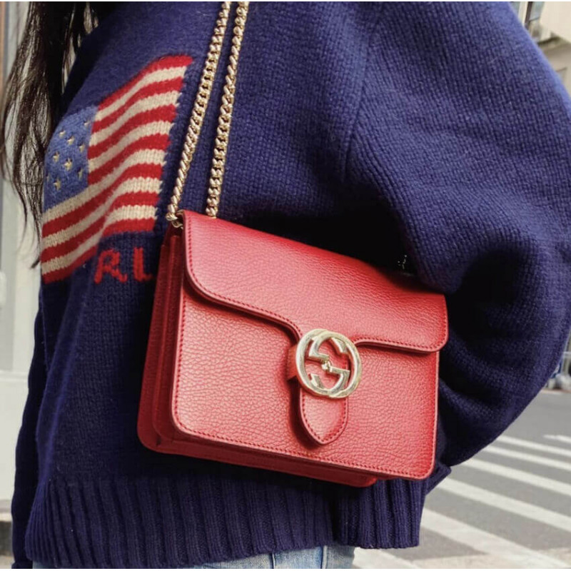 Gucci Intertraking Chain Leather Cross Body Bolsas 510304