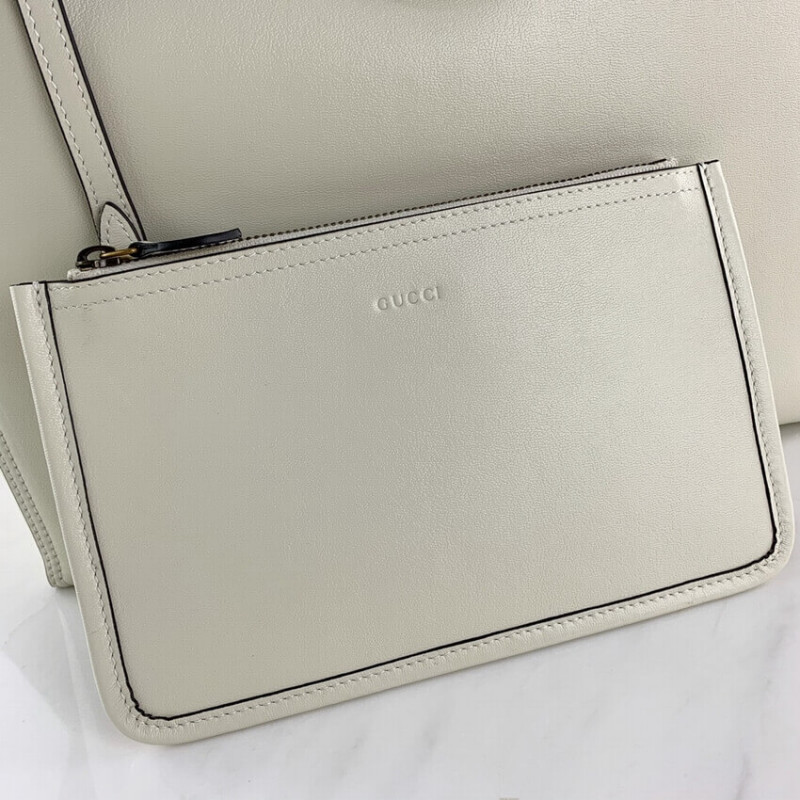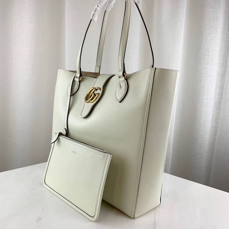 Introduzido pela primeira vez nos anos 70, o duplo G decora uma bolsa de couro suavemente estruturada. Uma década favorita do Diretor Criativo, os detalhes daquele momento adicionam um apelo retrô em toda a coleção Epílogue. Introduzido em couro preto, o estilo é aprimorado pela adição de uma bolsa interna.