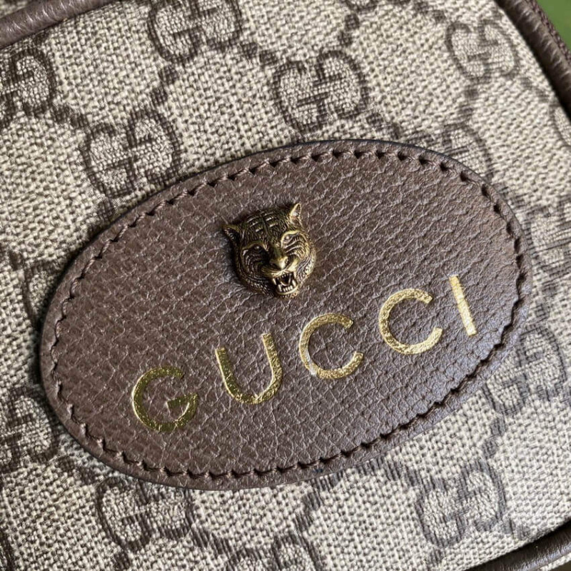 etiqueta de couro Gucci oval com cabeça felina