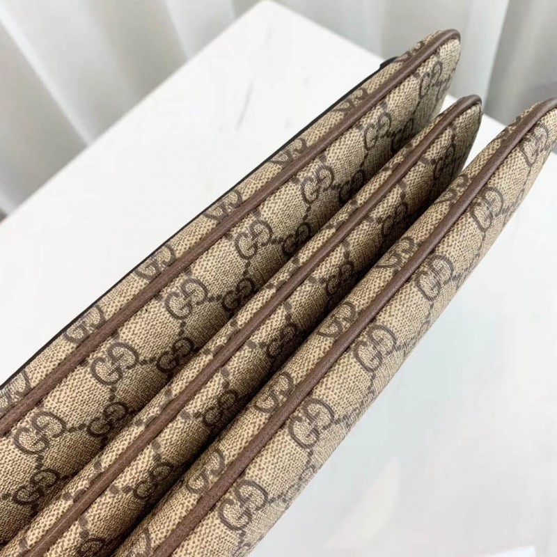 Desenvolvido pela primeira vez por Gucci na década de 1950, a faixa da web continua a prestar homenagem às raízes e influências equestres da casa, inspiradas na alça que garantiu a sela ao cavalo. Retratado em sua combinação mais notável de verde e vermelho, a faixa corre pelo centro de uma bolsa de ombro médio na tela suprema GG. Um material com baixo impacto ambiental, com acabamento em couro marrom