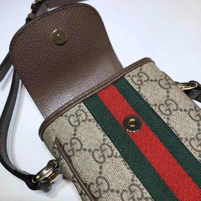 bege/ebony gg supremo tela, um material com baixo impacto ambiental, com acabamento em couro marrom