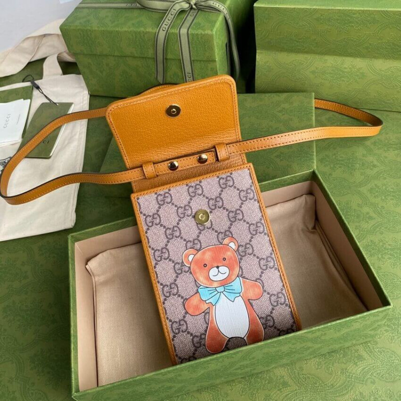 O cantor, artista e ator do K-pop, Kai, inspira uma formação de prontos para vestir e acessórios. Seu animal favorito, o ursinho de pelúcia, mistura uma forte associação com a cultura pop e influências vintage para um design extravagante. Esta mini bolsa de ombro é apresentada como parte da coleção especial.