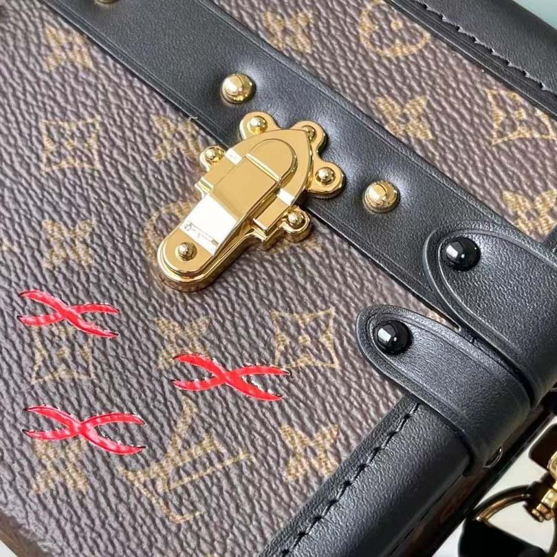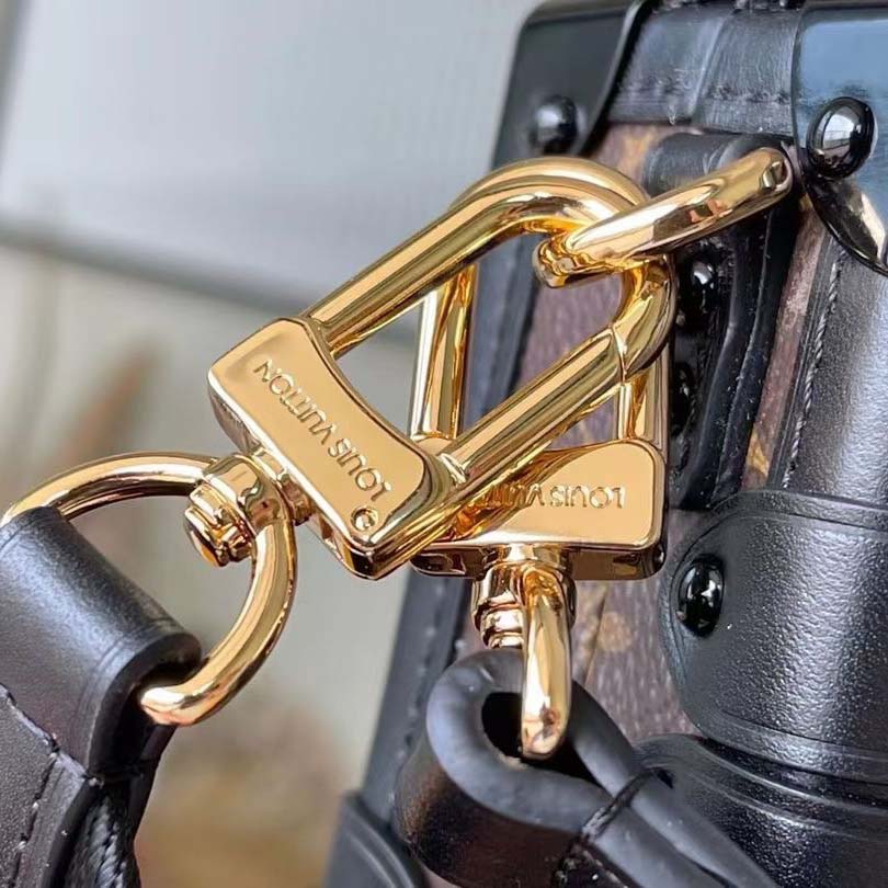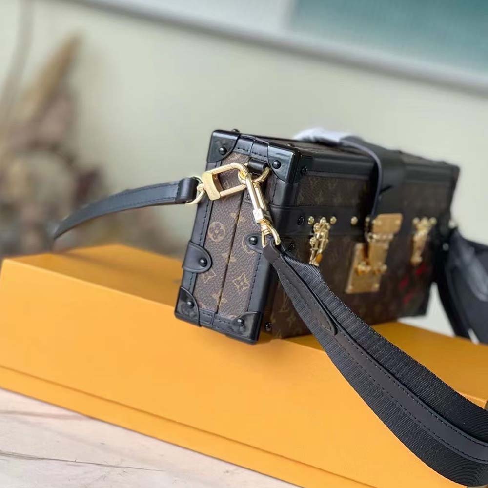 Estendido um pouco mais do que a clássica bolsa Petite Malle, o petite malle leste-oeste é a celebração de Nicolas Ghesquière do 200º aniversário do fundador da casa. É feito de tela de monograma com acabamento de couro preto. Ele pode ser transportado à mão-como visto na pista durante o show da primavera 2022-ou usado no ombro com uma de suas duas tiras destacáveis.