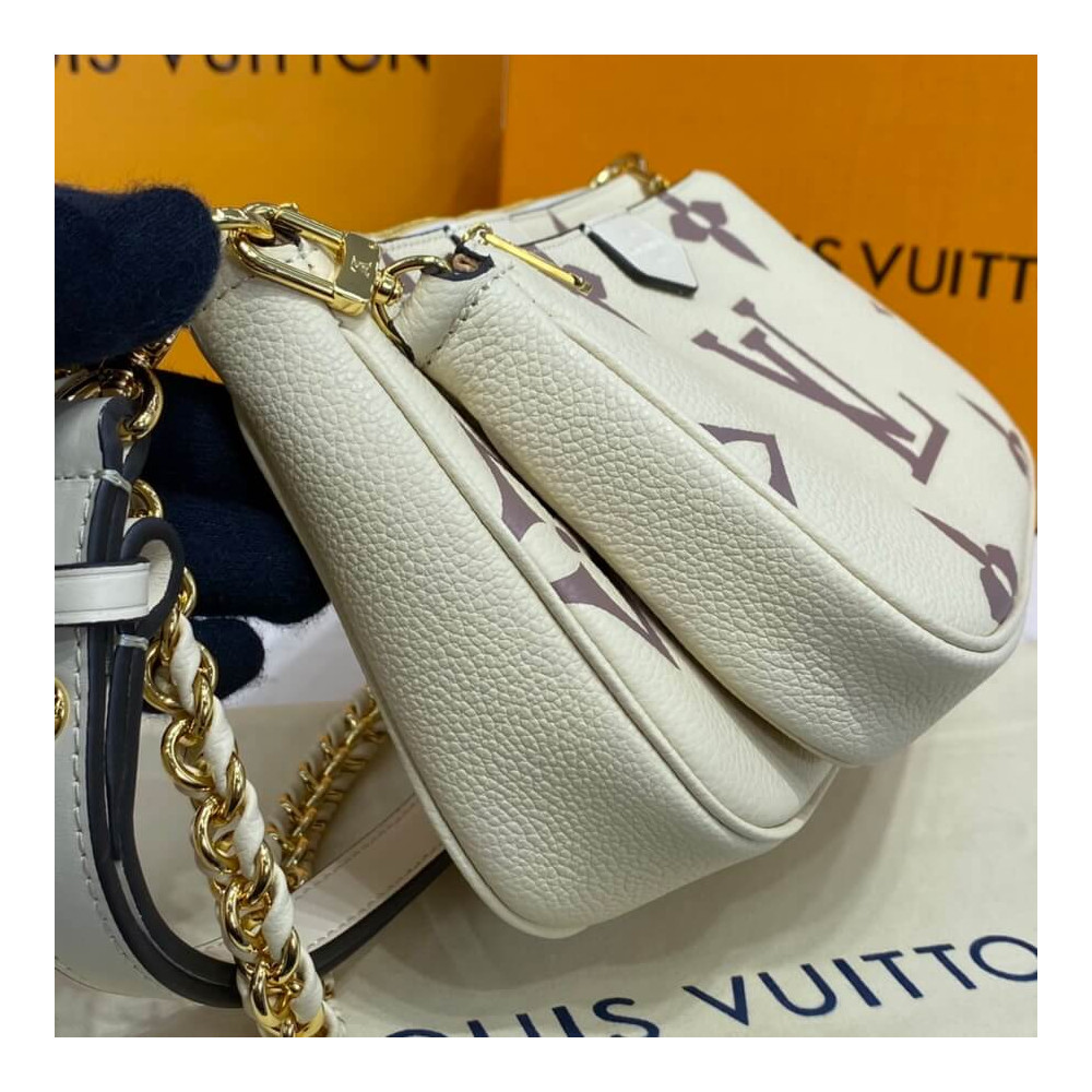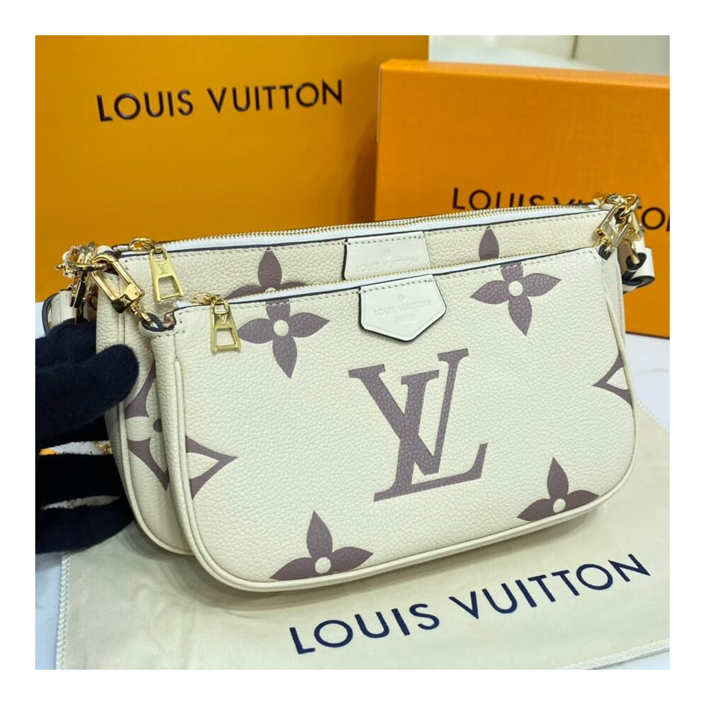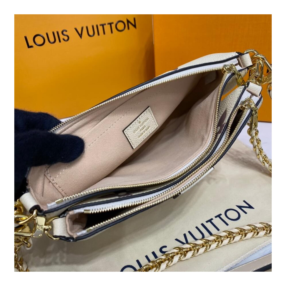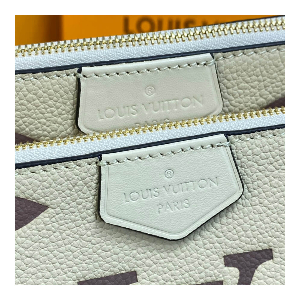 A bolsa cruzada de acessórios de Pochette Multi Pochette assume um aspecto impressionante em couro de monograma preto em relevo, em excesso, impressa com o motivo do monograma em uma cor creme. Do tamanho certo para carregar o essencial de uma mulher, esta bolsa de dois em um mantém as coisas organizadas com suas bolsas removíveis. É confortável usar graças à sua flexibilidade e peso leve.