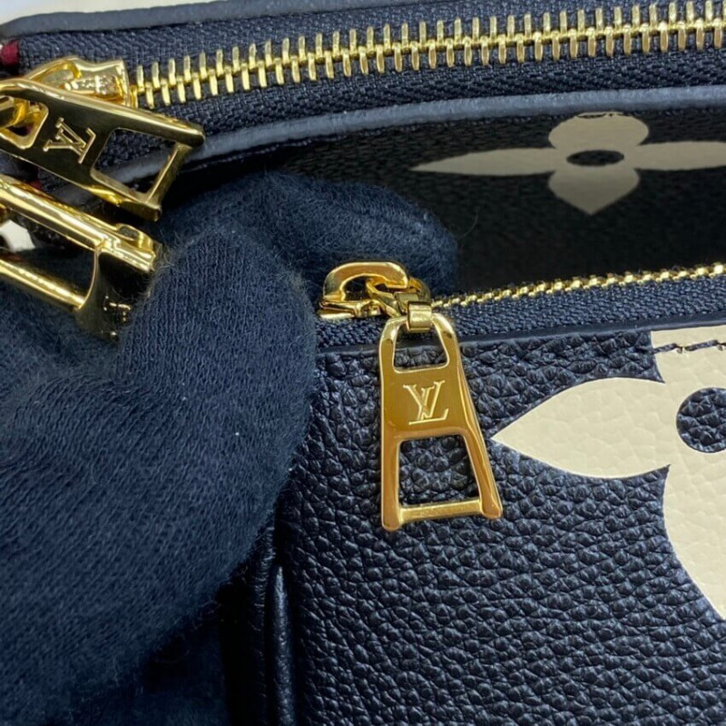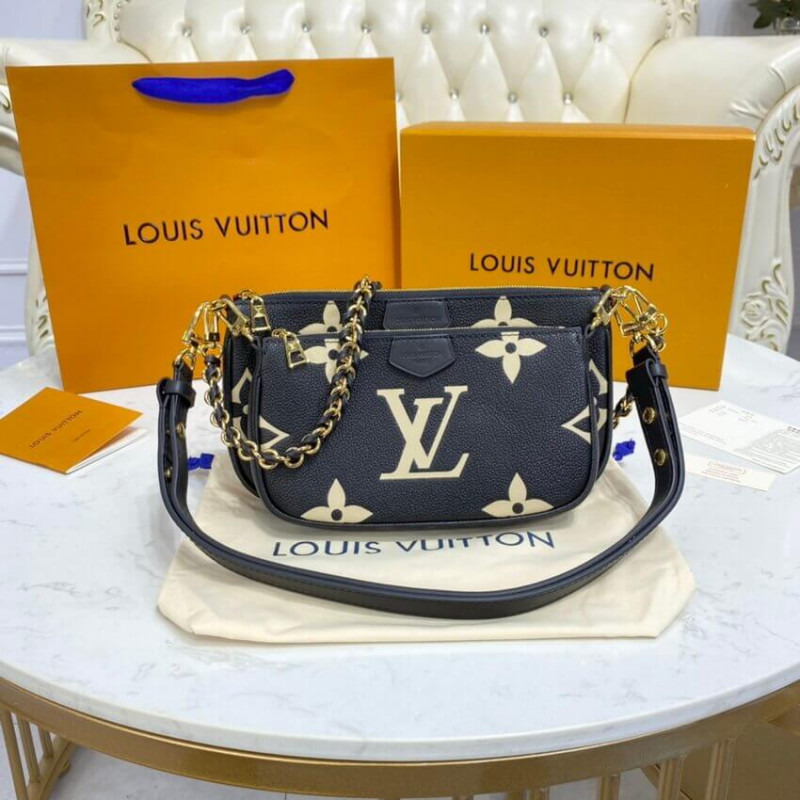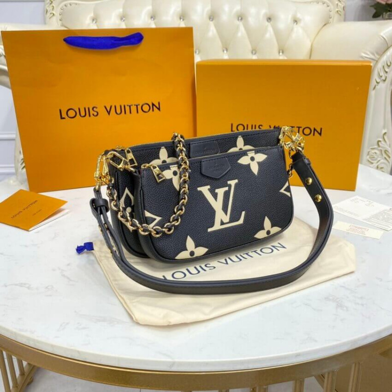 A bolsa cruzada de acessórios de Pochette Multi Pochette assume um aspecto impressionante em couro de monograma preto em relevo, em excesso, impressa com o motivo do monograma em uma cor creme. Do tamanho certo para carregar o essencial de uma mulher, esta bolsa de dois em um mantém as coisas organizadas com suas bolsas removíveis. É confortável usar graças à sua flexibilidade e peso leve. /Creme