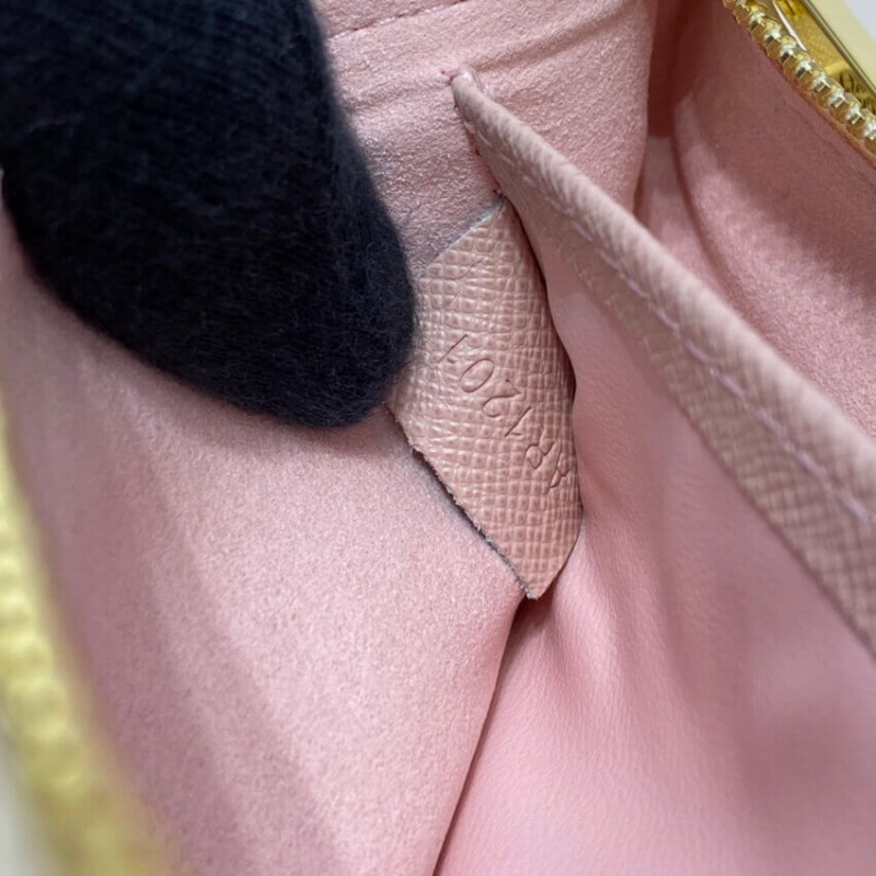 Esta versão de verão do Double Zip Pochette vem na tela de Damier Azur com uma pulseira removível no emblemático couro natural de Louis Vuitton. Esta bolsa versátil apresenta dois bolsos presos seguros com um bolso aberto no meio. Está finalizado com uma etiqueta de couro natural em relevo com a assinatura da casa.