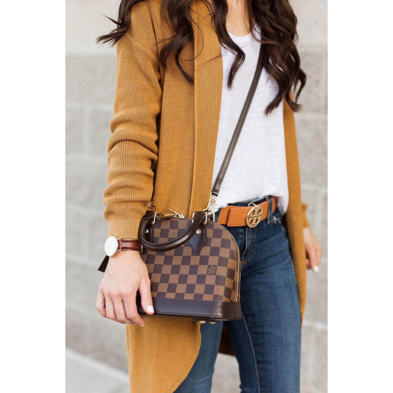A bolsa Alma BB rastreia seu pedigree ao original Art Deco, introduzido em 1934. Detalhes da assinatura transmitem uma elegância atemporal a esse modelo fabricado a partir de gráficos Damier Ebene Canvas: Observe o cadeado de ouro e as chaves, as mangas Twin Toron e a tecla de couro chique. Equipado com uma alça removível, esta pequena bolsa encantadora é perfeita para o desgaste do corpo cruzado.