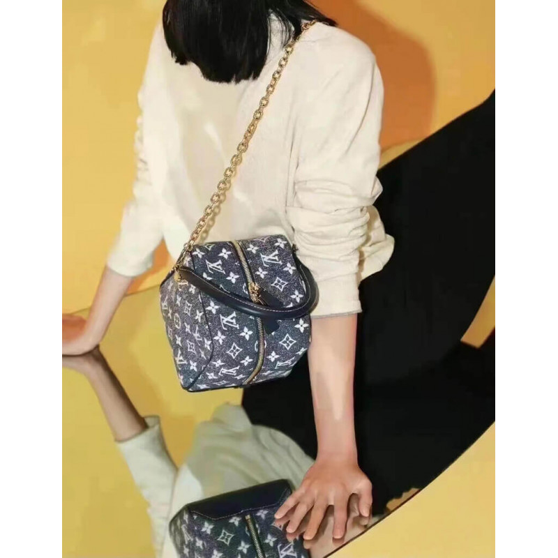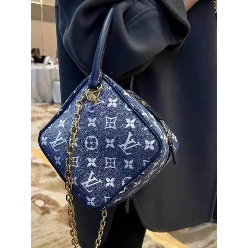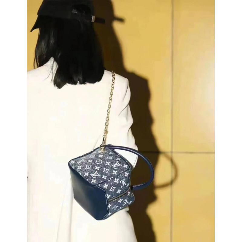 Desenhado por Nicolas Ghesquiere, a bolsa quadrada é um jacquard de monograma lavado em areia com acabamento em couro de vaca e peças de metal, completo com alças de couro e correntes destacáveis. BR]]Jacquard Denim Lining