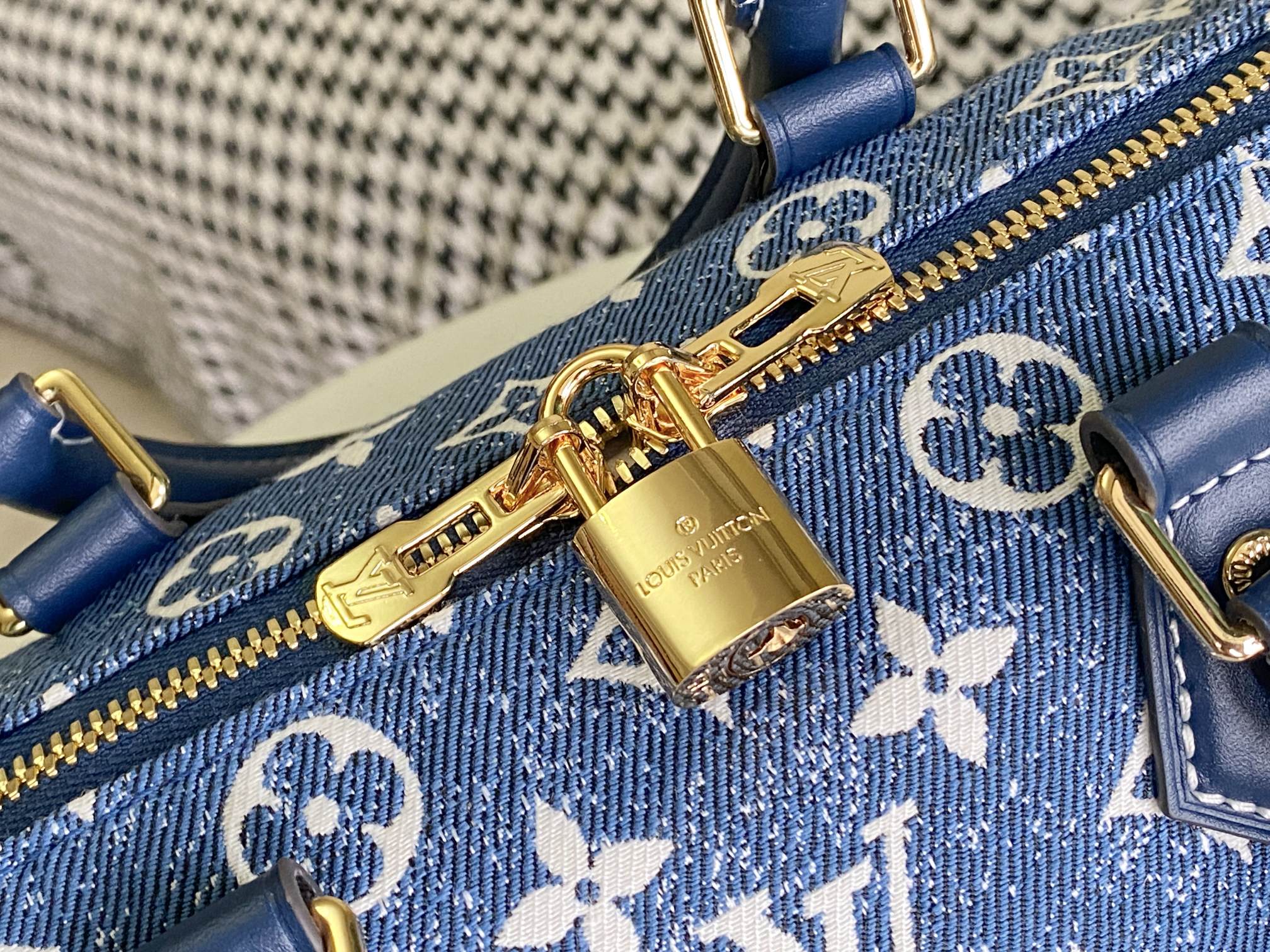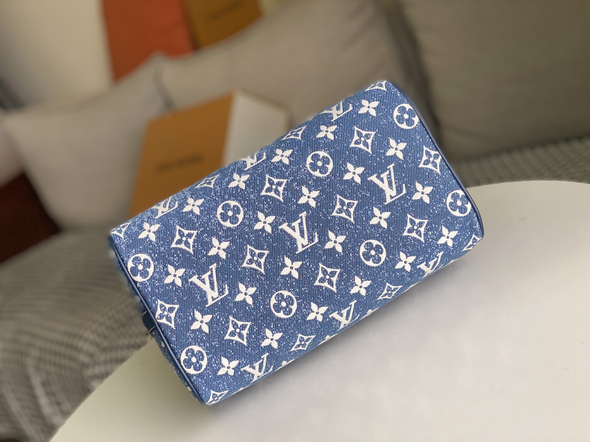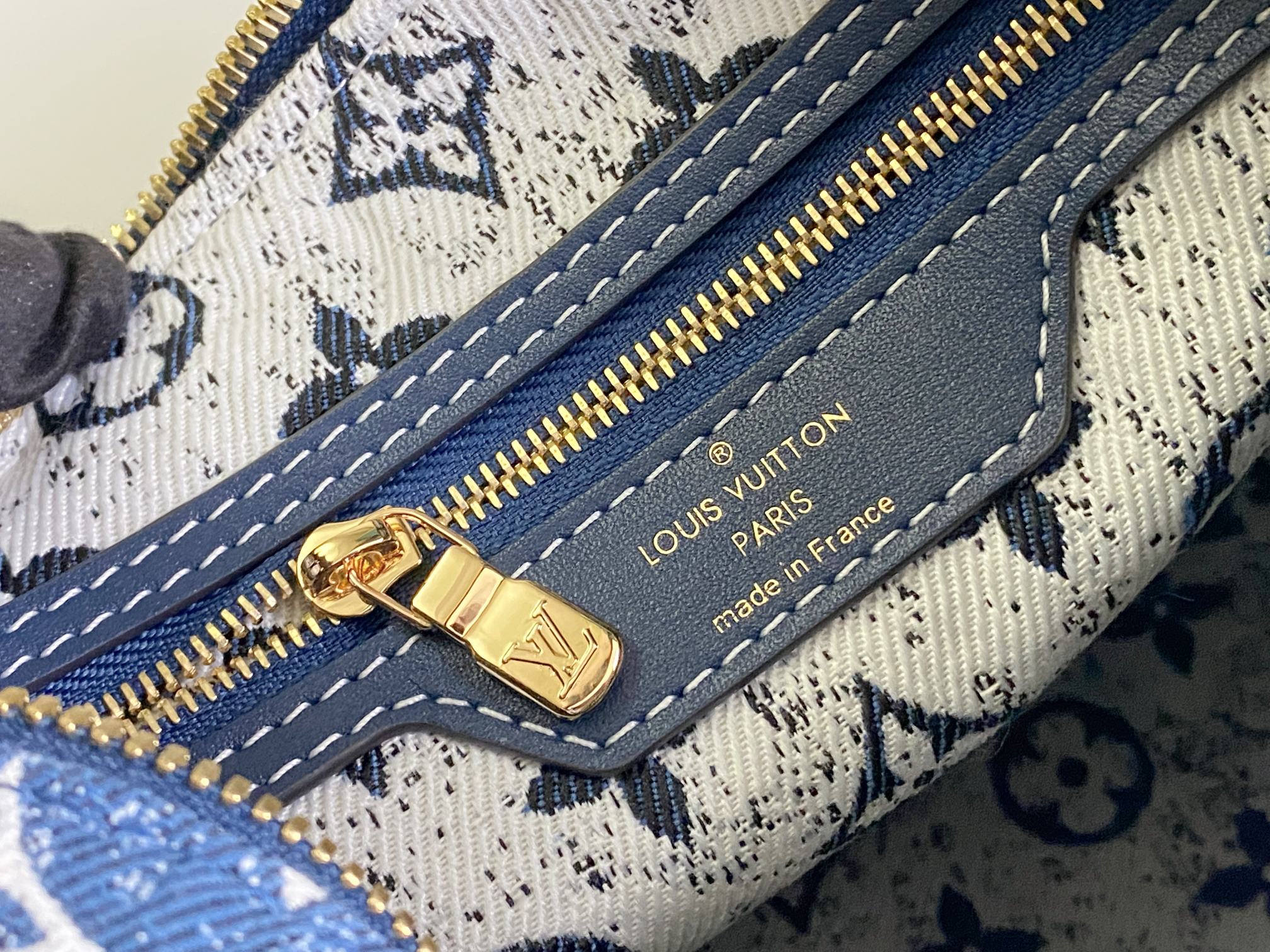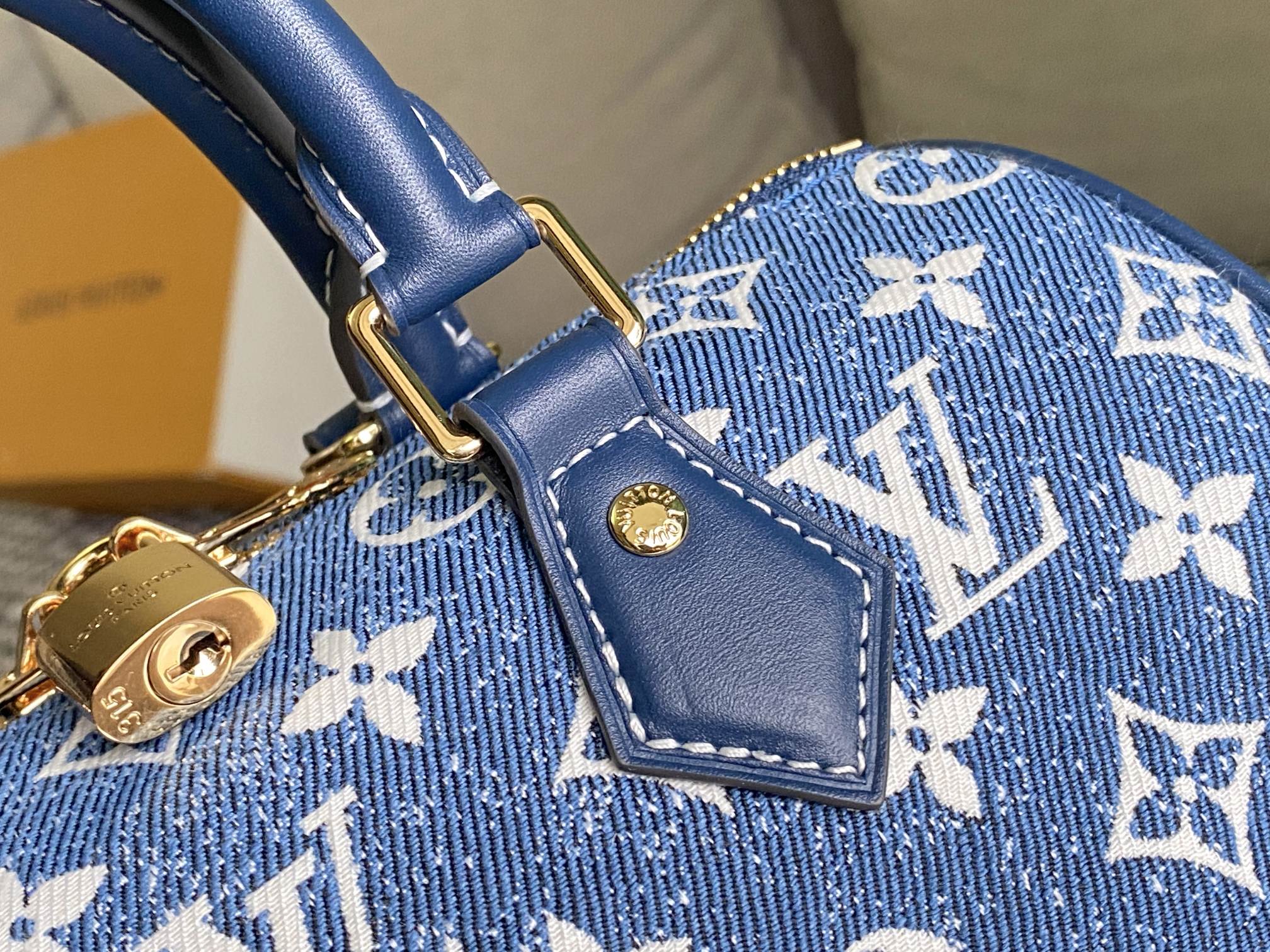 A bolsa VEL Speedy Bandoulière 25 é feita de Monogram Denim Jacquard para uma sensação casualmente elegante. O azul desbotado é complementado pela guarnição de couro azul mais escura de tais em tons e costura branca. A tecelagem Jacquard cria um padrão de monograma no tecido que não desaparecerá com o tempo.