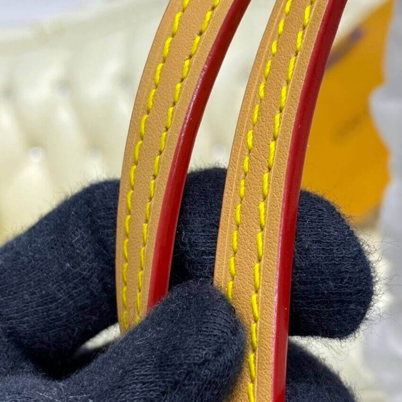 Para o inverno de 2020, o clássico da casa Neverfull MM é feito com o novo têxtil de assinatura de Nicolas Ghesquiere: um padrão moderno que destaca muitos dos símbolos da casa. Inspirados por papéis de parede da década de 1960, as flores do monograma e as iniciais do VE são combinadas com os 1854s, o ano em que a Louis Vuitton iniciou sua empresa, para criar um padrão com uma sensação neo-vintage.