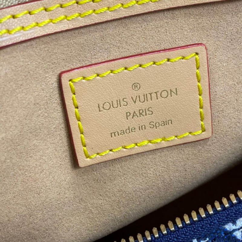 A bolsa clássica rápida Bandouliere 25 parece impressionante em Jacquard desde 1854 têxteis com hardware de cor dourada e couro preto. O novo padrão de tecido, introduzido por Nicolas Ghesquiere para a coleção Fall-Winter 2020, combina flores de monograma com outros símbolos da casa e o número 1854, o ano de Louis Vuitton iniciou seus negócios.