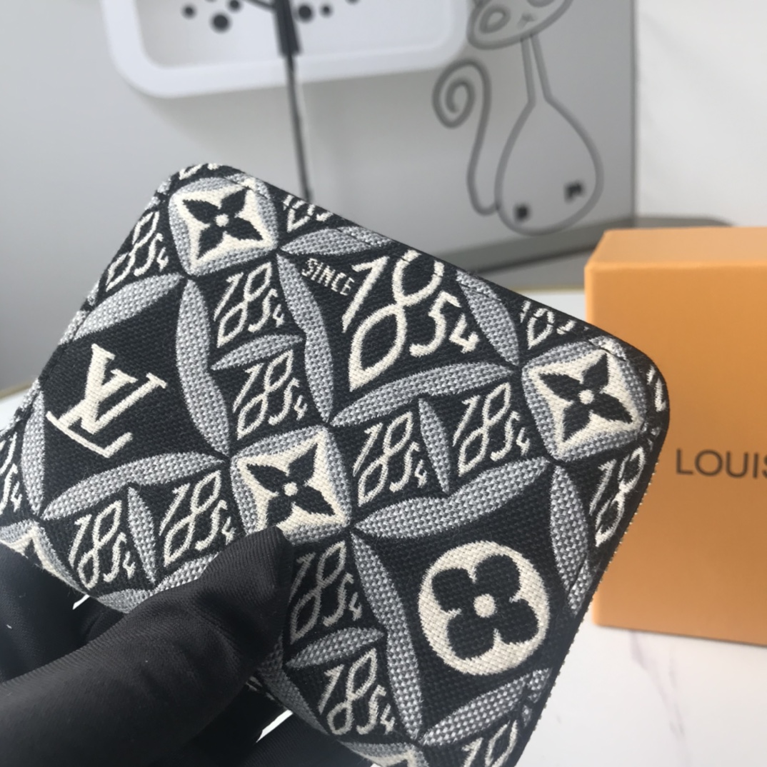 A bolsa de moedas Zippy é revisitada em Jacquard desde 1854 têxteis, introduzida por Nicolas Ghesquière para o outono-inverno 2020. Esse padrão envolve o número 1854, o ano em que a casa foi estabelecida, com as pétalas das flores do monograma. O motivo traz uma sensação neo-vintage a essa bolsa compacta, mas inesperadamente espaçosa. Desde 1854 Zippy Coin Purse M69997