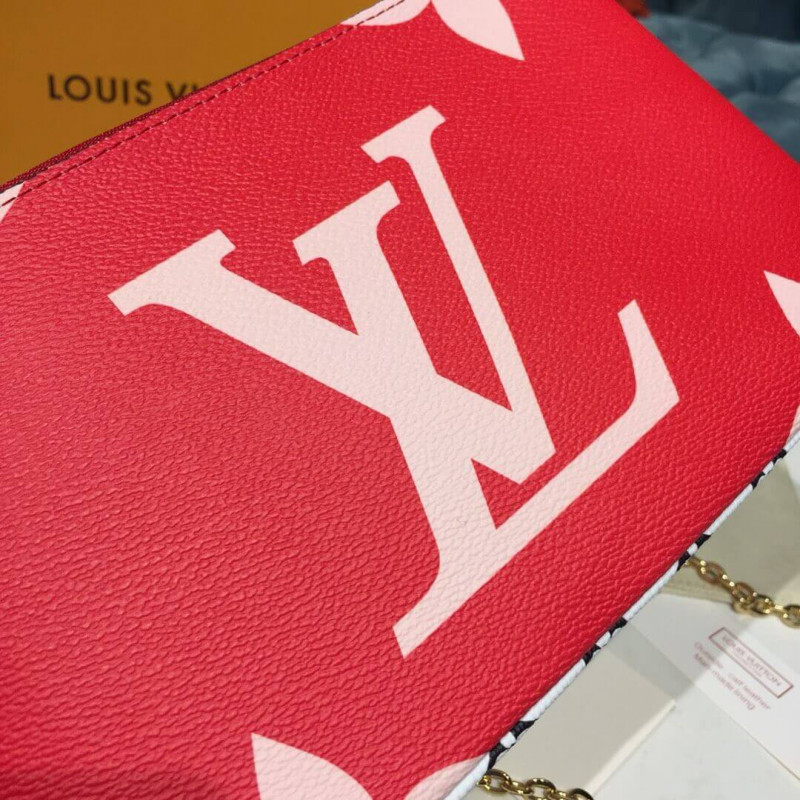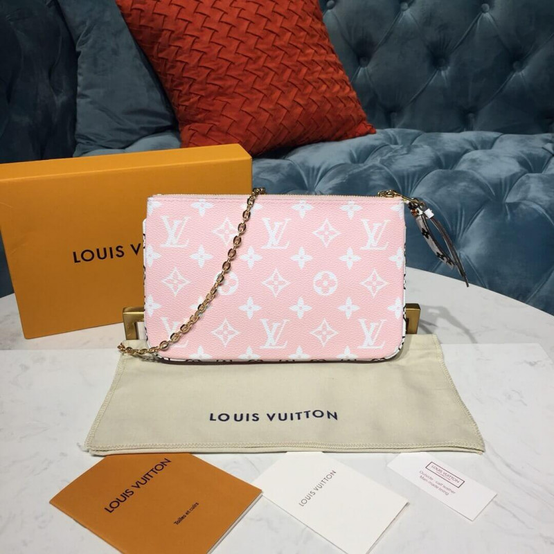 Como parte da coleção de verão 2019, o Pochette Double Zip toca com diferentes tamanhos de tela de monograma em vermelho atraente e rosa. Esta bolsa versátil possui dois bolsos com objetos de valor para objetos de valor e um espaço intermediário, oferecendo acesso direto aos itens essenciais. Pode ser transportado no ombro ou na mão.