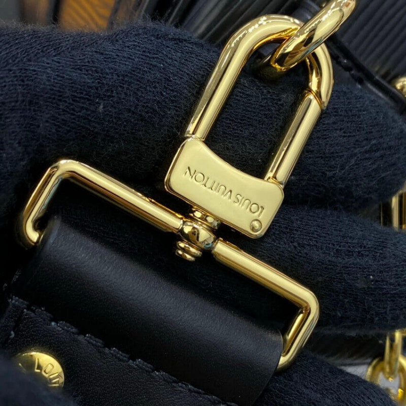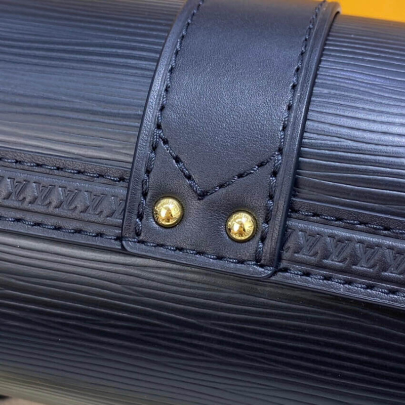 Feito de couro EPI em relevo e acabado com rebites metálicos e uma bloqueio S, a bolsa distinta do tronco de papillon combina estilo contemporâneo com pistas tradicionais de design da Louis Vuitton. Esta bolsa de baguete semi-rígida pode ser transportada manualmente, mas também possui uma alça destacável para transporte de ombro e corpo cruzado. Br]]forro de microfibra