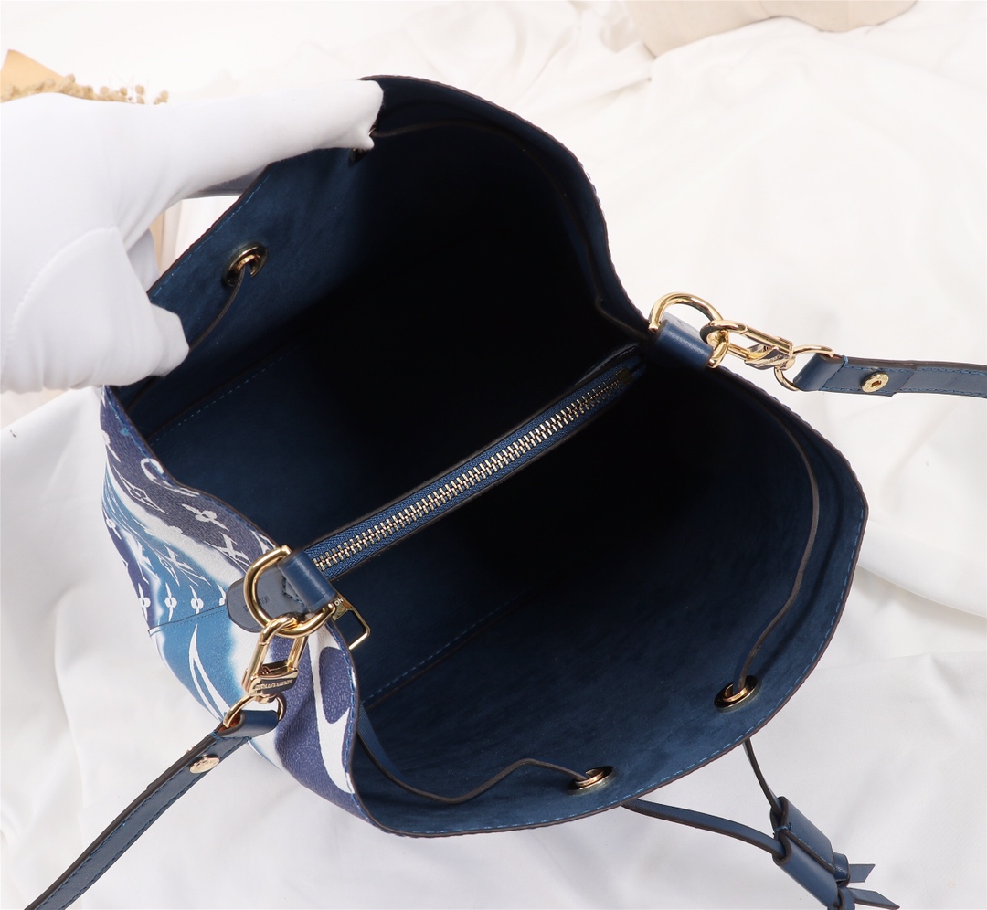 Um verdadeiro ícone da casa, a bolsa Néonoé revisita um design de 1932 de Gaston-Louis Vuitton. O original foi criado para transportar garrafas de champanhe em grande estilo; Esta versão moderna na tela de monograma apresenta uma forma elegante, guarnição de couro colorida e um forro unido correspondente. A tira inteligente ajustável pode ser pendurada por cima do ombro ou prolongada para um carregamento da cor do corpo da moda. Néonoé MM M44020
