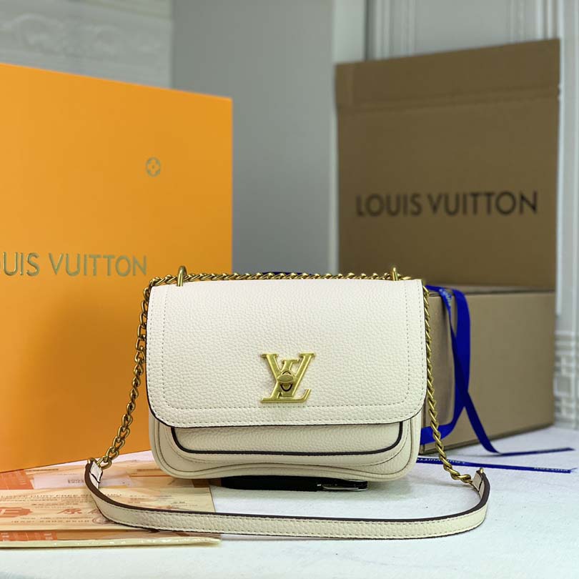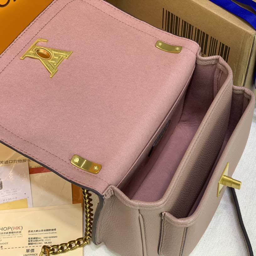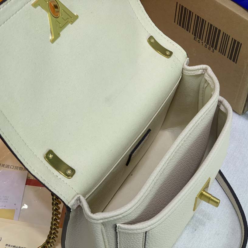 A bolsa PM da cadeia de lockme é feita de couro de bezerro granulado. Suas linhas elegantes são assinadas com a icônica trava de volta do VE, reimaginada em um design facetado elegante. Oferece um transporte de ombro e crossbody confortável, graças à sua corrente deslizante com uma longa pasta de ombro de couro. Os bolsos dianteiros e planos traseiros oferecem acesso fácil aos pertences.